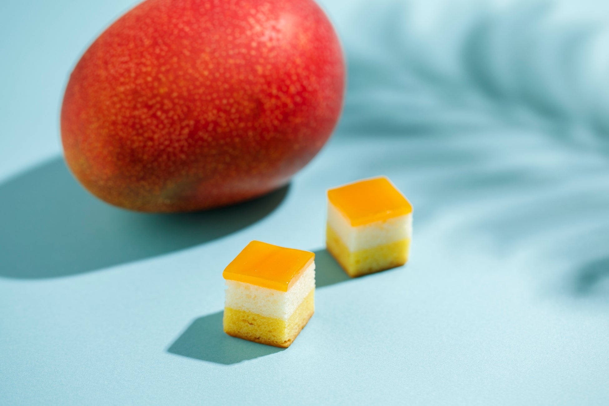 濃厚な味わいのミルク生地とフルーティーな酸味のマンゴー生地が見事に調和します。