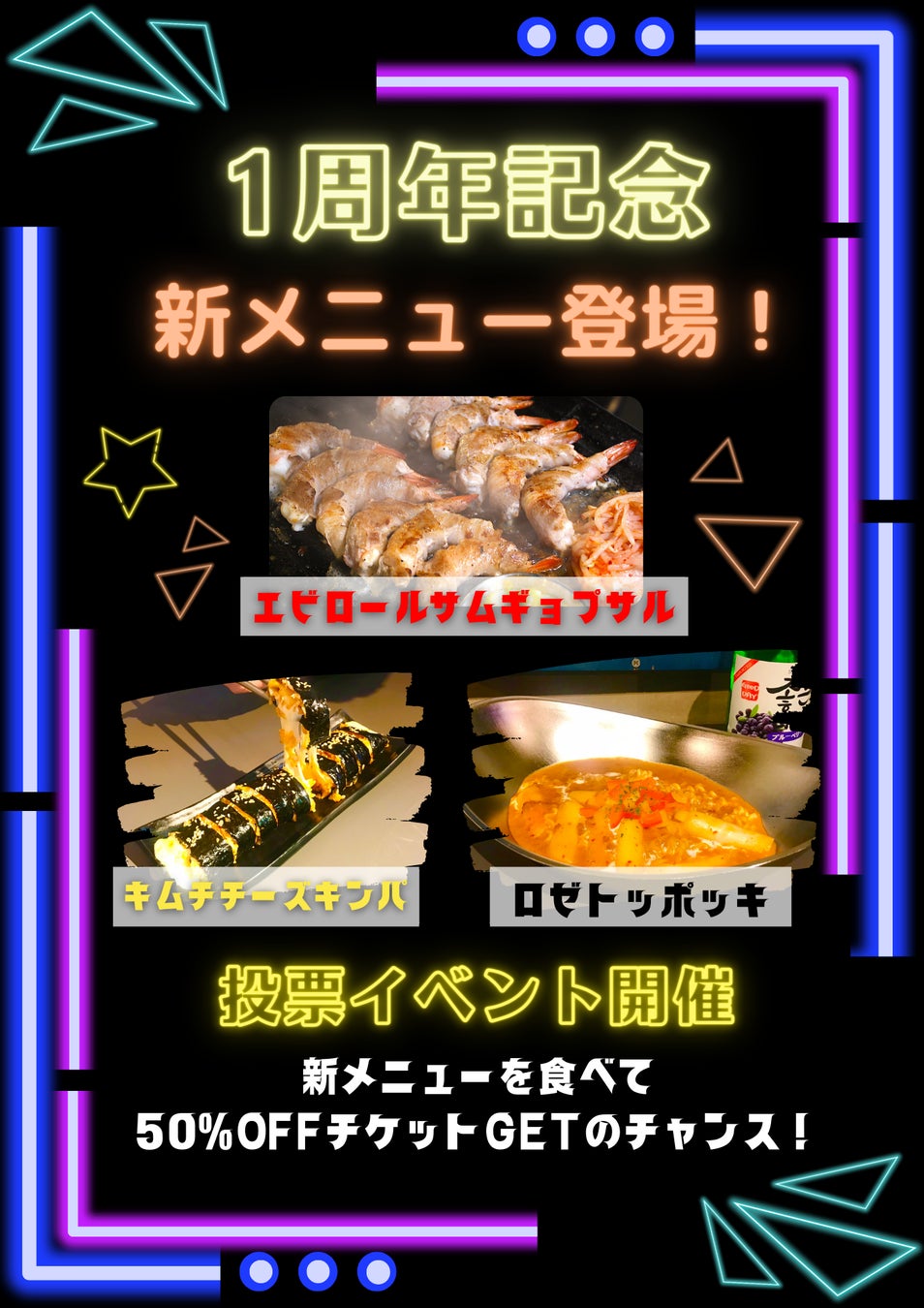 【1周年記念】新メニュー投票イベント開催!新メニューを食べて50%OFFチケットGETのチャンス