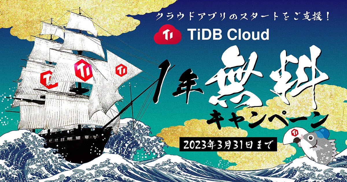 TiDB Cloud(https://pingcap.co.jp/tidb-cloud/)をご利用いただいたことがないお客様を対象にTiDB Cloud1年間相当の値引きキャンペーンを実施します。