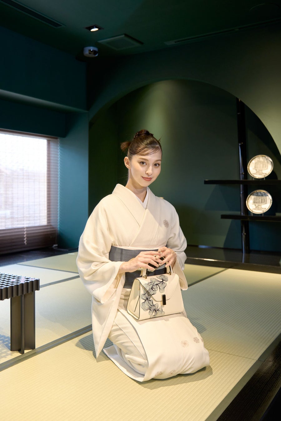 グランドオープンを記念したイベントには、女優・黒木瞳さん、女優・中条あやみさんがヴァレクストラのアイコンバッグ“イジィデ”を携えて美しい着物姿で登場しました。