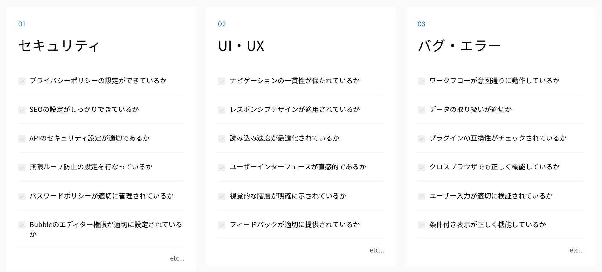 Bubbleで開発されたシステムのクオリティを専門家が徹底的にチェックします。
