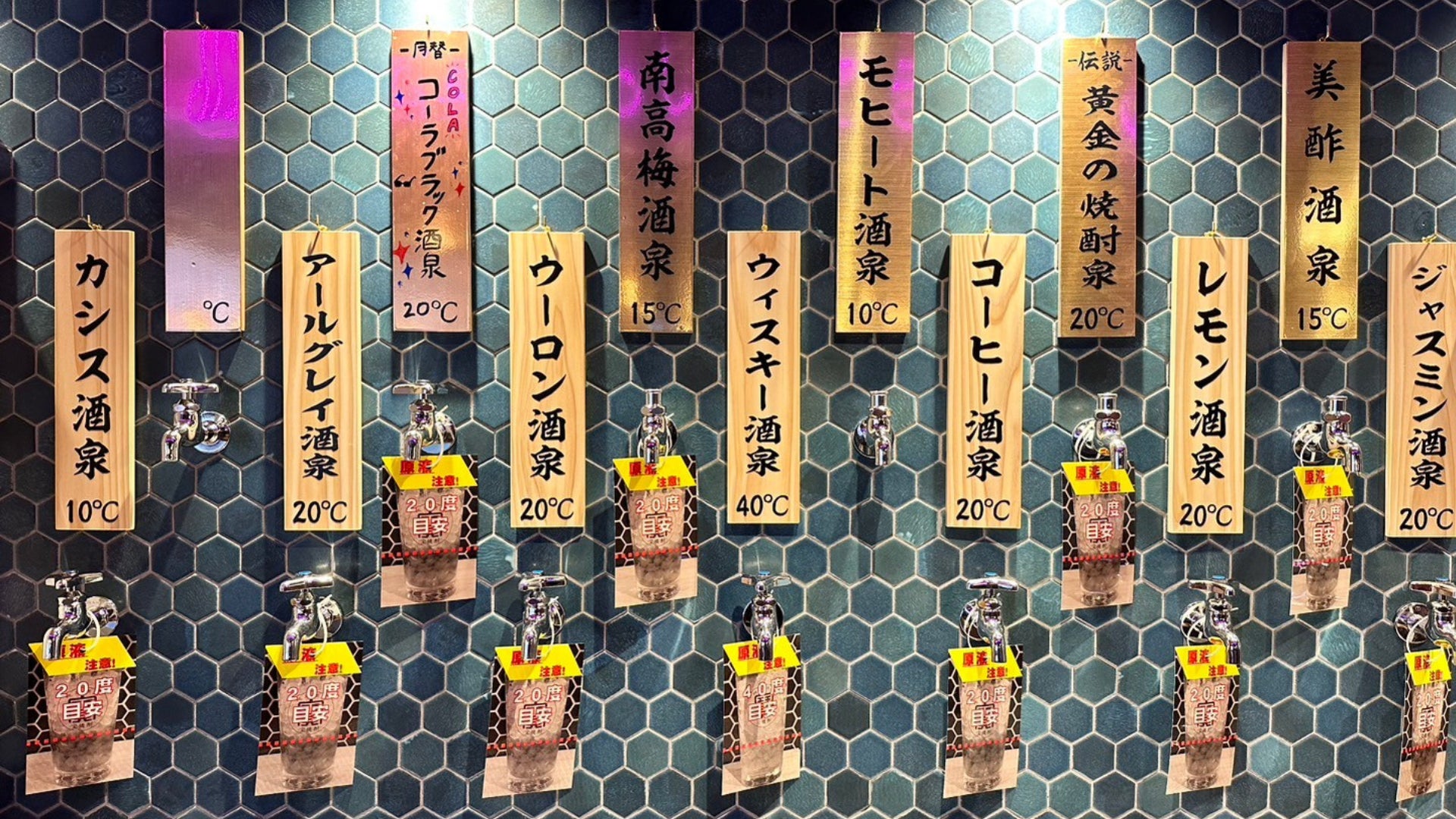 壁に並ぶ13種類の蛇口からお酒がセルフで注げる スタイルで、“タイパ最強”の飲み放題体験を提供。