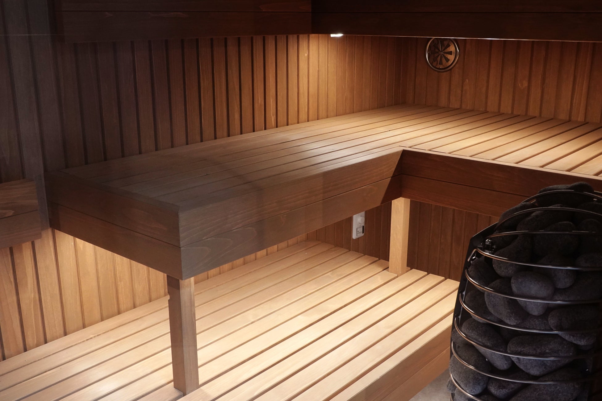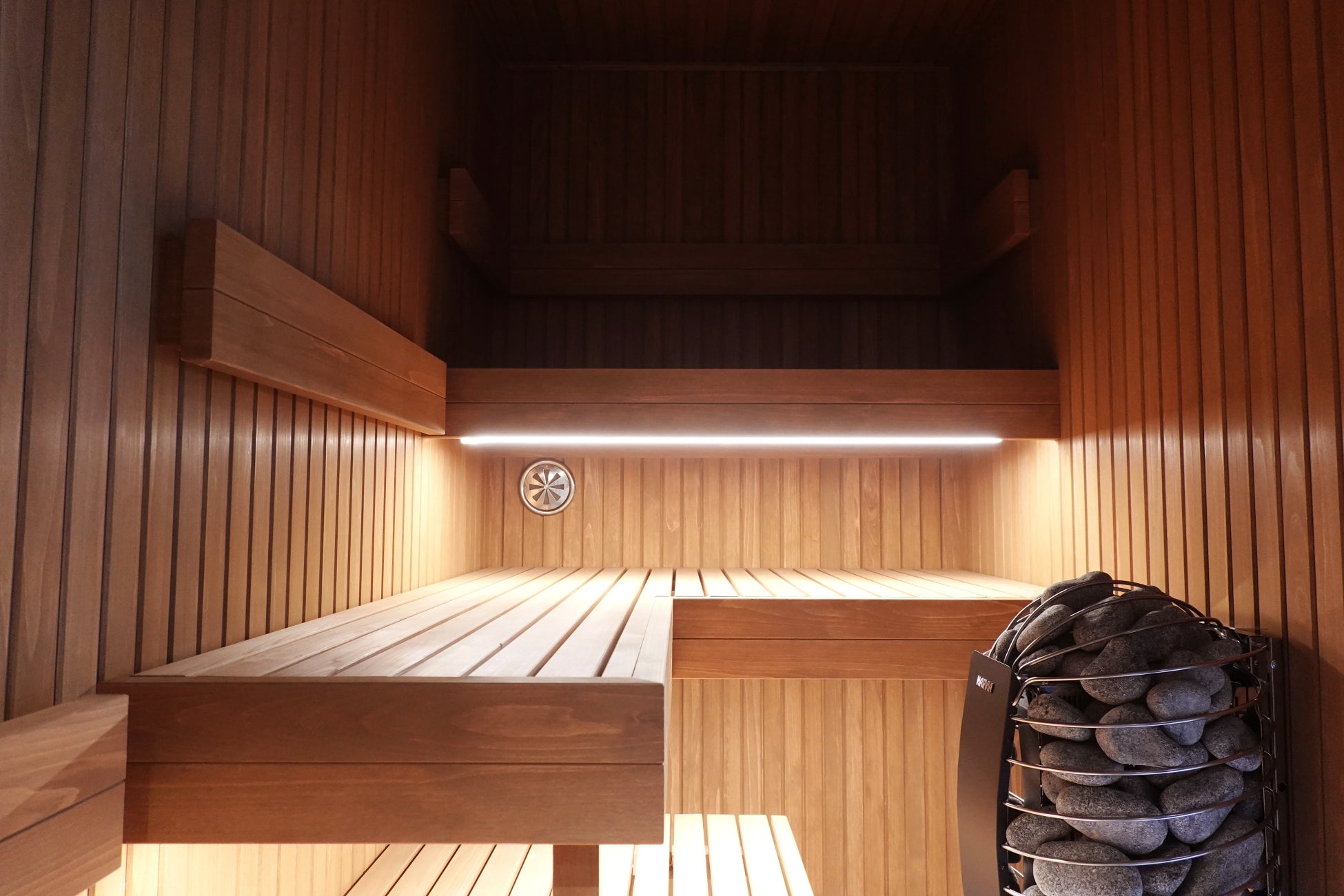 サウナ内の空気がスムーズに流れるよう、ストーブとベンチの配置に合わせた給排気設計を実施。