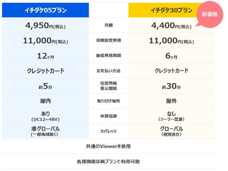 既存の「イチダケ30プラン」もさらにお求めやすくなるように、月額料金を¥8,800(税込)から¥4,400(税込)に変更しました。機器設置時にも電源配線が不要なプランのため、お手軽に利用可能です。