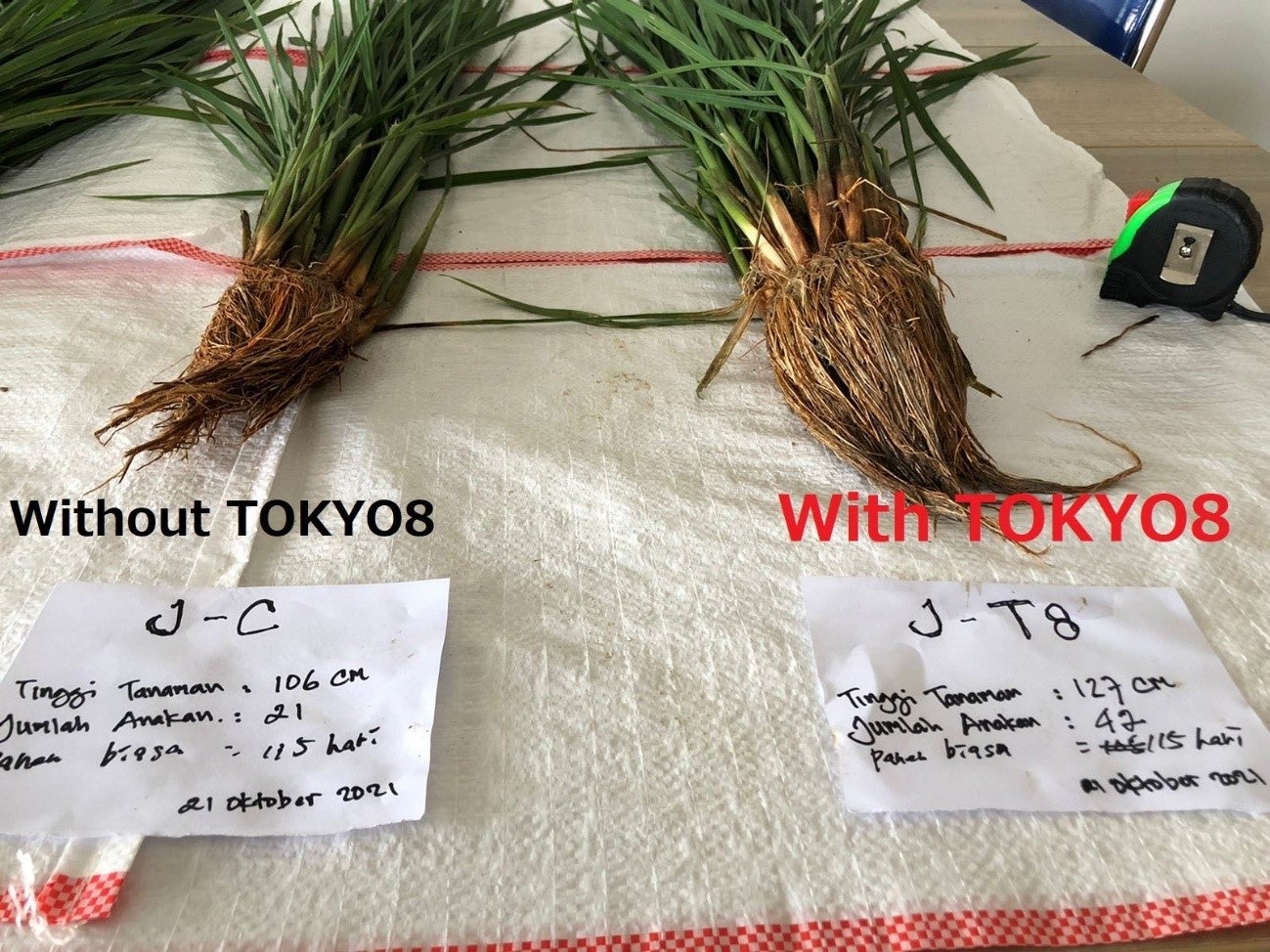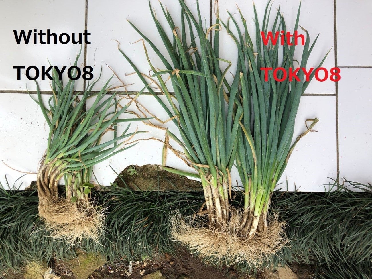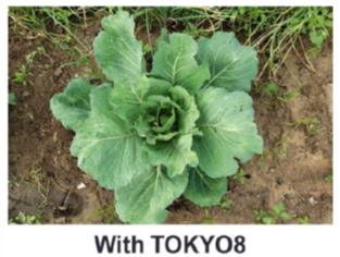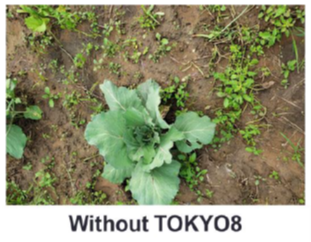また液体である「東京8」は、播種や育苗期~成長期まで水に薄めて合計5回ほど散布。背負いポンプ、動力噴霧器、ドローン噴霧、潅水チューブ、ジョウロなど既存の設備を利用可能。臭いもほとんど無く、皮膚毒性も経口毒性もございません。