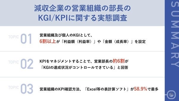 【減収企業の営業組織の実態とは】KGIとして約7割が利益額(利益率)設定 KPIは「面談系行動件数」を重要視する傾向