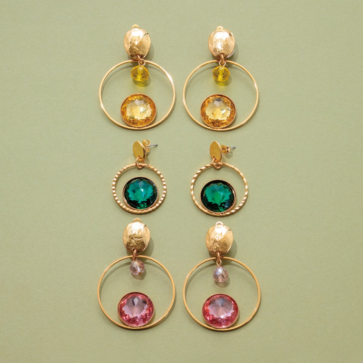 また、特別感のあるホリデーシーズンにもぴったりの、希少なヴィンテージガラスを使った「L‘AMOROSO (ラ・モローゾ)」コレクションが発表されました。現在はほぼ作られていない製法で製造された数十年前のヴィンテージガラスとデザイナーとの出会いからスタートしたこのコレクションは、内側に箔を閉じ込めたような奥深い輝きを放つ大振りなパーツを使い、「セシル・エ・ジャンヌ」ならではの華やかで大胆なデザインに落とし込んでいます。