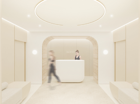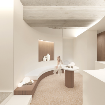 「渋谷」という地域性を意識し、角をとった柔らかなニュアンスで若々しさを表現しつつ、アイコニックなカウンターを軸にお客様の体感にゆとりを感じさせる空間を構成しています。それぞれのマテリアルや各ボリュームの要素が互いに調和を生むよう、設計しました。