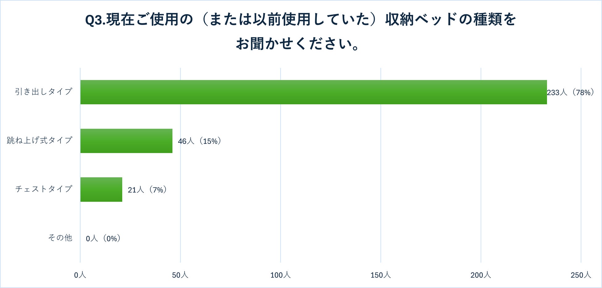 「Q3. 現在ご使用の(または以前使用していた)収納ベッドの種類をお聞かせください」との質問に対し、結果は次のようになりました。
