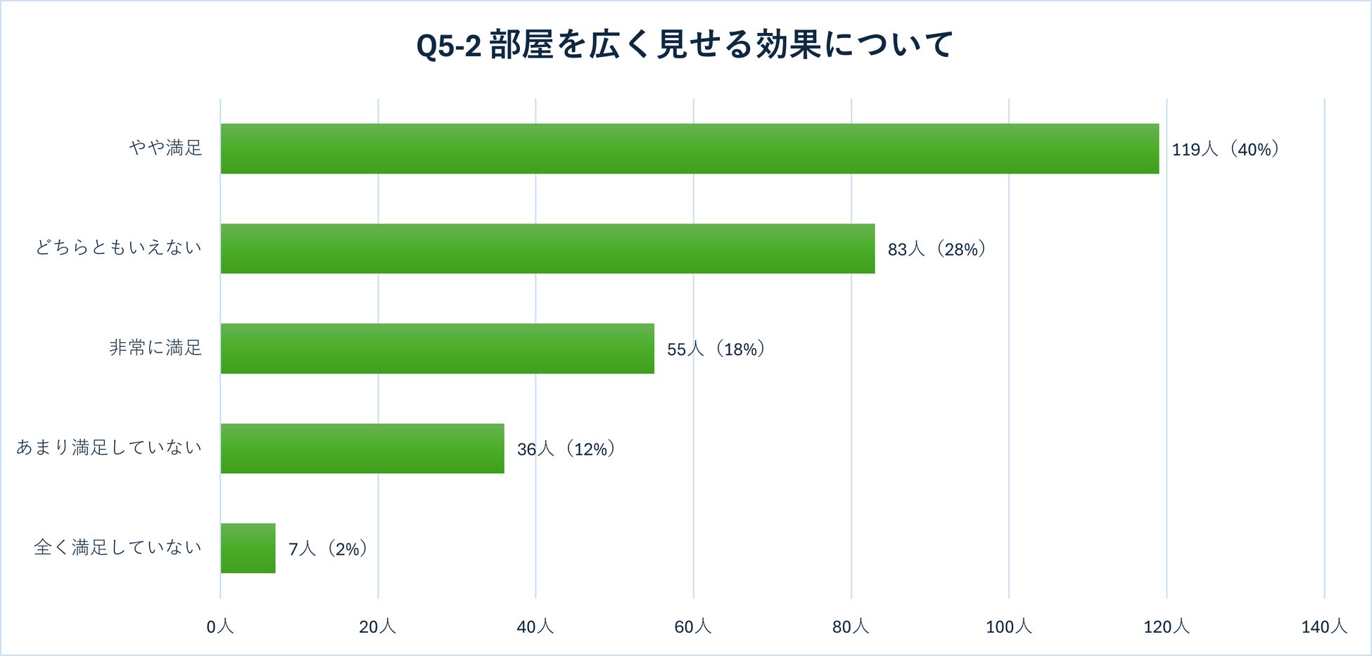 「Q5-2 部屋を広く見せる効果について」の満足度は、次のような結果になりました。