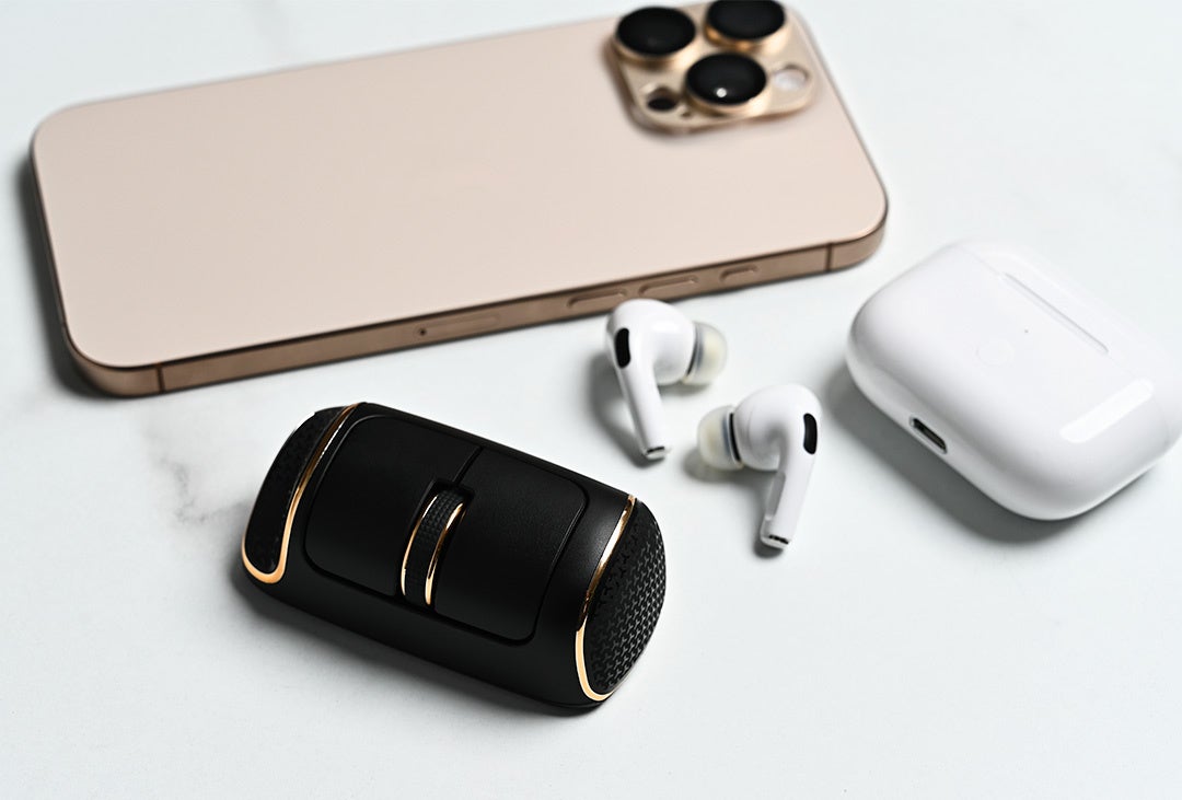 持ちやすさ、使いやすさに拘った目を惹く独特な形状!外での使用や持ち運びにも重宝する、新しい「Finger Barrel Mouse i2」。