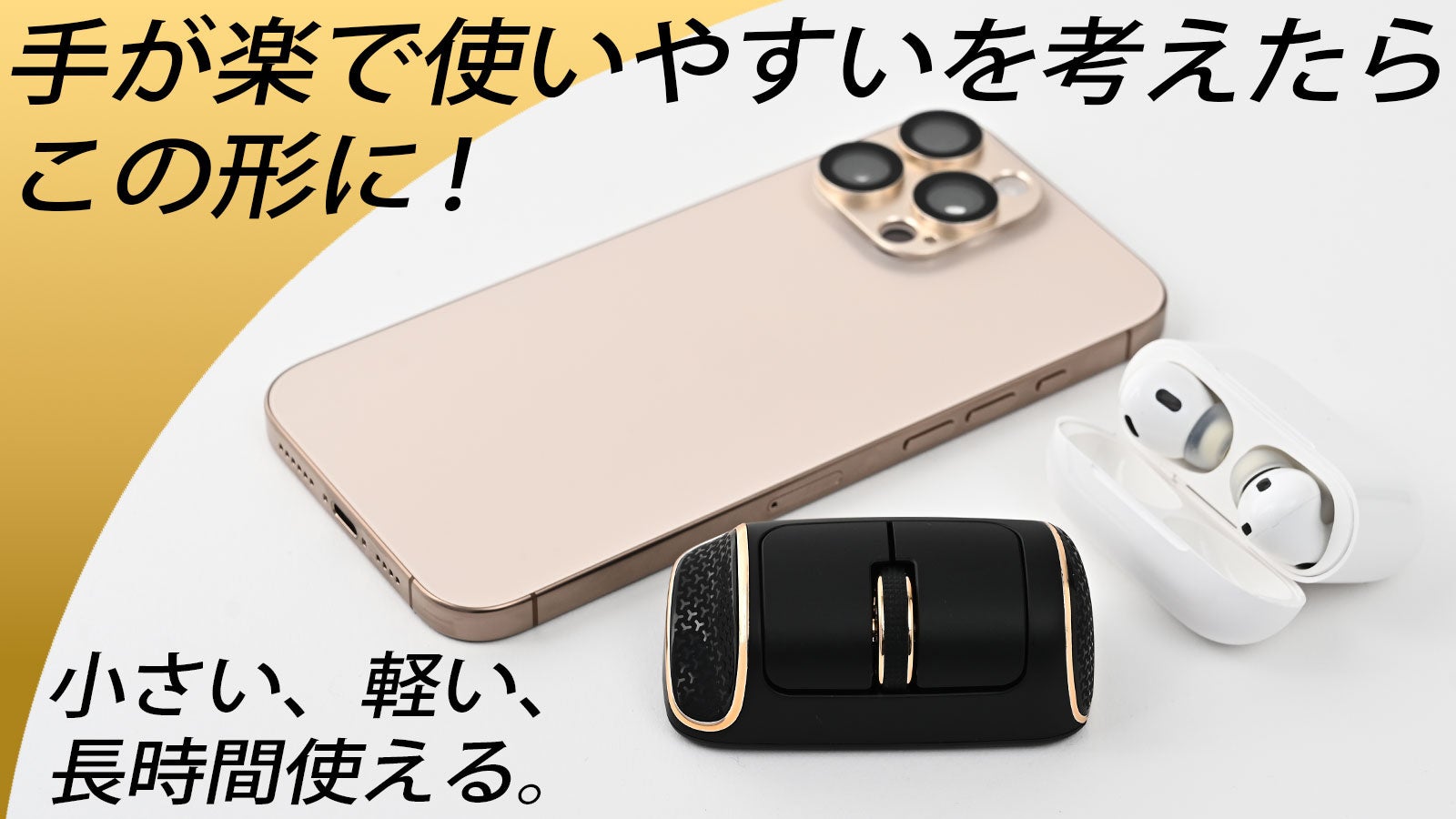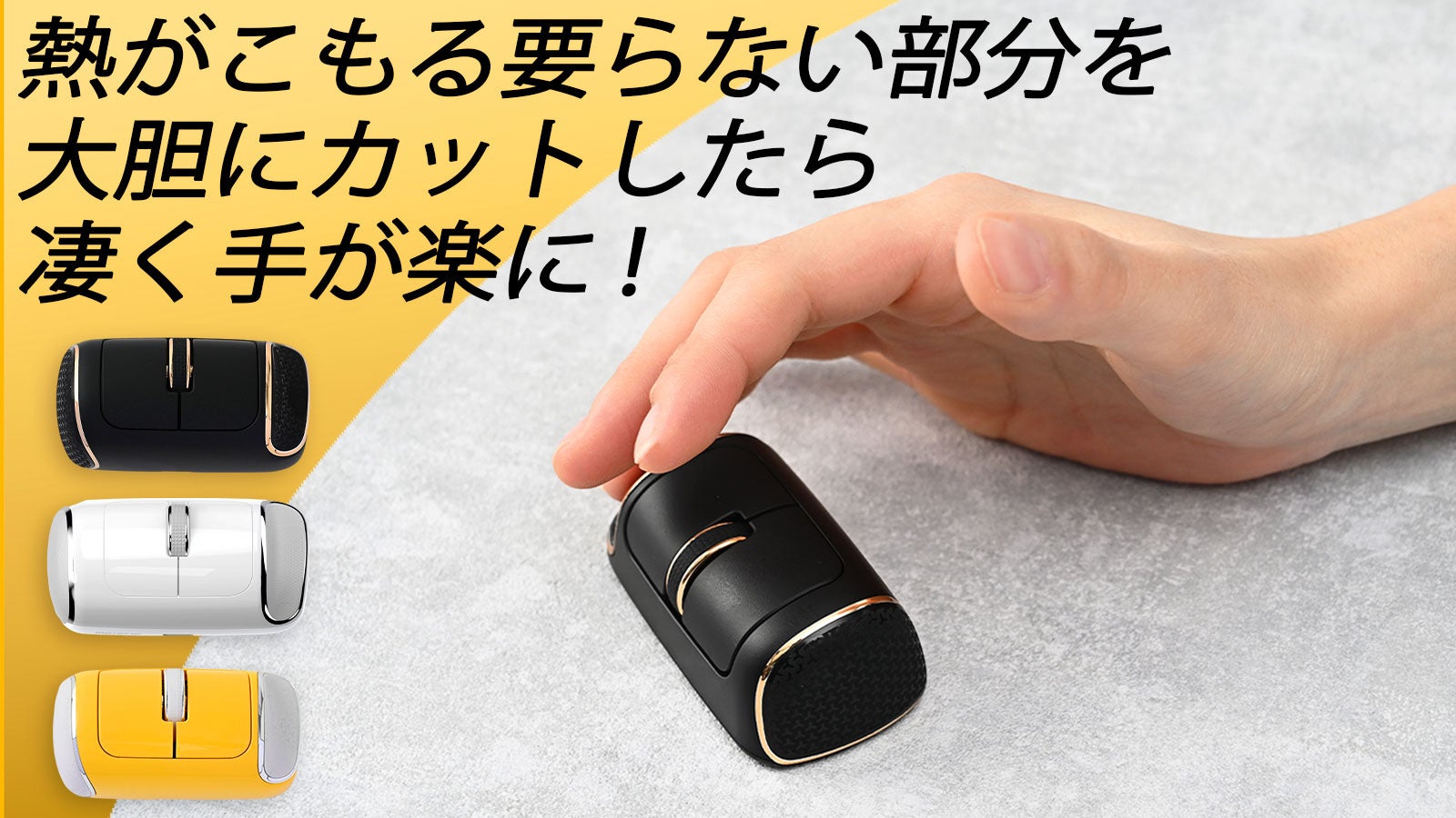 画期的な形状で手首、肩への負担が少ない、指先で操る疲れ知らずのミニマウス第二弾!大好評Makuake公開中、現在1200名以上の応援購入760万円越え!前作から大幅改良!