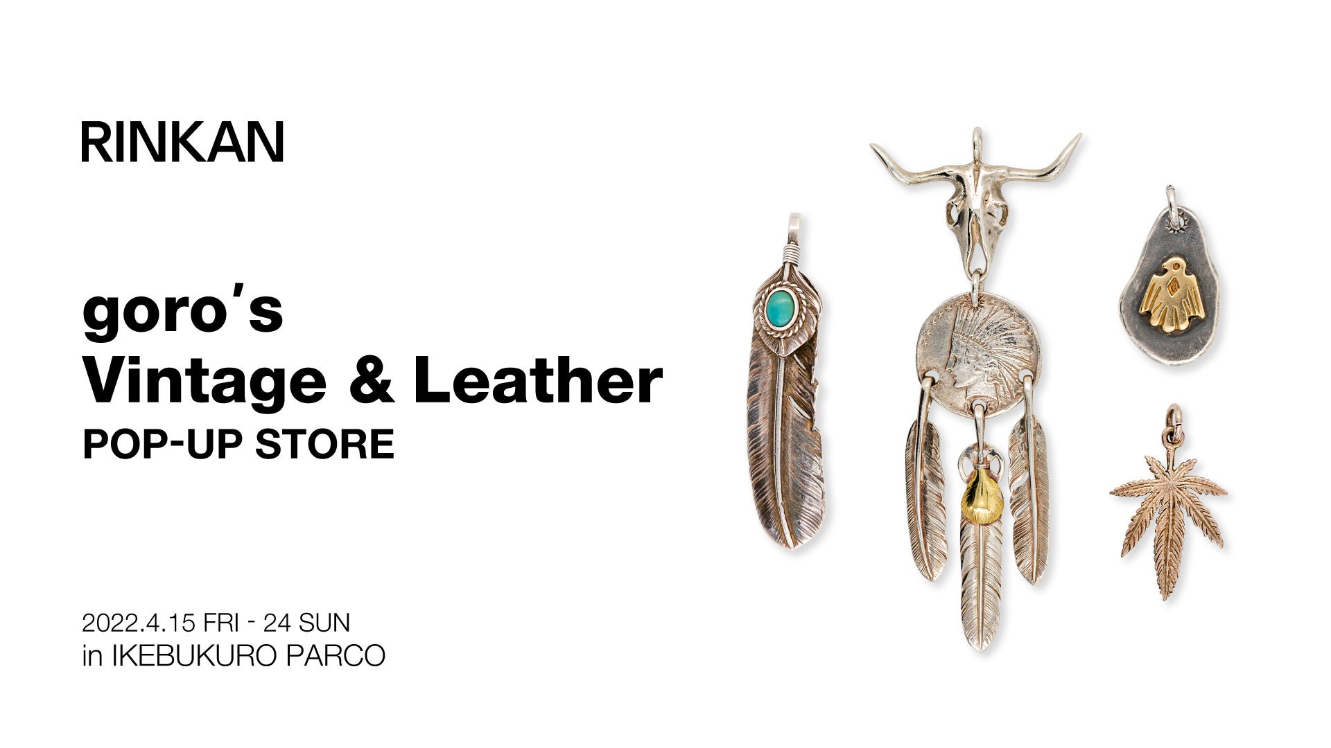 ストリートブランドやデザイナーズブランドの買取・販売を行うセレクトショップ「RINKAN」は2022年4月15日(金)から4月24日(日)の期間、ゴローズの創始者である高橋吾郎氏の生前に販売された希少なヴィンテージアイテムや新品のレザーアイテムを展示・販売するポップアップストア「goro’s Vintage & Leather POP-UP STORE」を池袋PARCOで開催いたします。