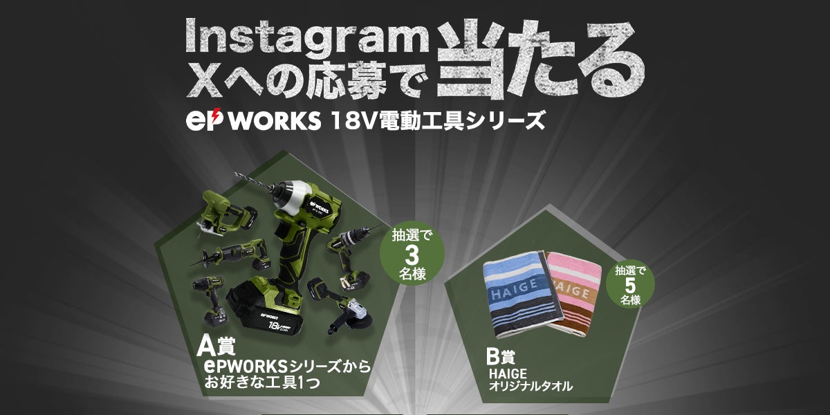 A賞:ePWORKSシリーズからお好きな工具1つ(抽選で3名様)