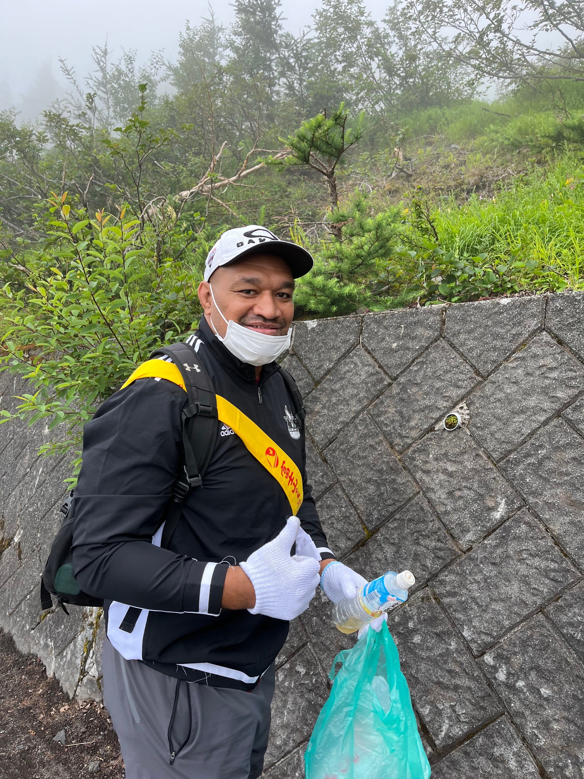 途中通りがかりの登山者や、他のボランティアからも「大きい」「ラグビー選手だ」などの声を掛けていただき、スポーツアスリートの存在感により清掃活動の重要性や富士山の美化について呼びかけることができました。