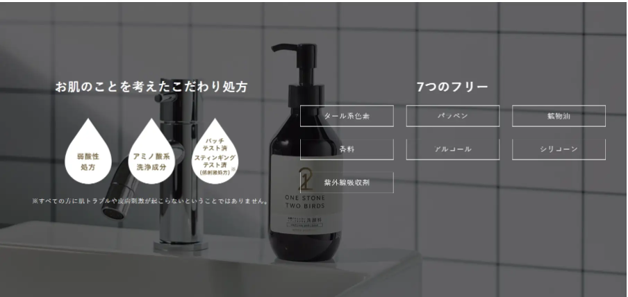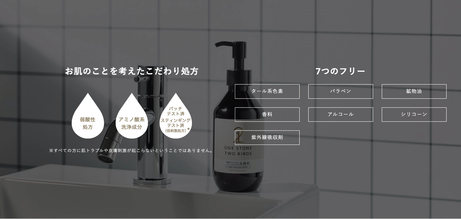 ▼お肌のことを考えたこだわり処方 7つのフリー