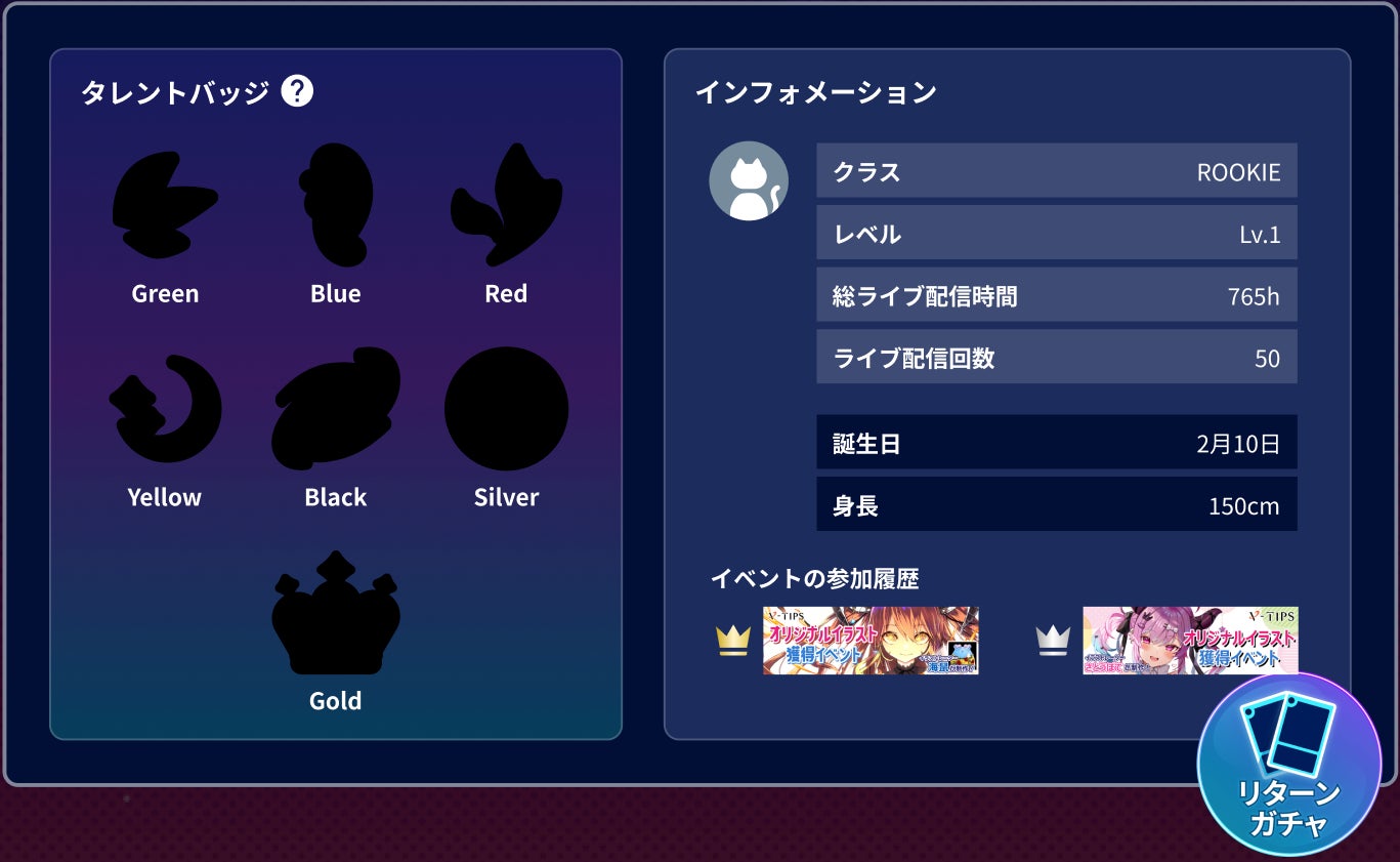 Vタレントの誕生日や身長、今までのライブ配信時間やイベントの参加履歴まで、たくさんの情報が詰め込まれた「プロフィールカード」が登場!