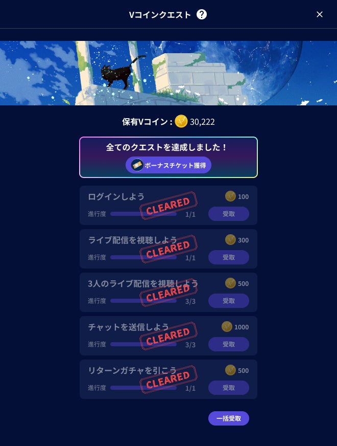 「Vコインクエスト」を達成して、たくさんのVコインを集めましょう!