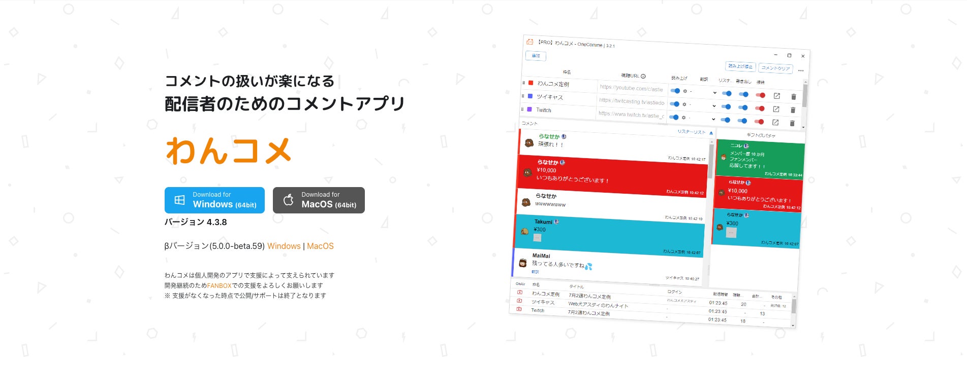 さらに「配信者のためのコメントアプリ わんコメ」さんとも正式に連携!webアプリを使うことで、手軽にいろんなデザインのチャットを画面上に表示できます。