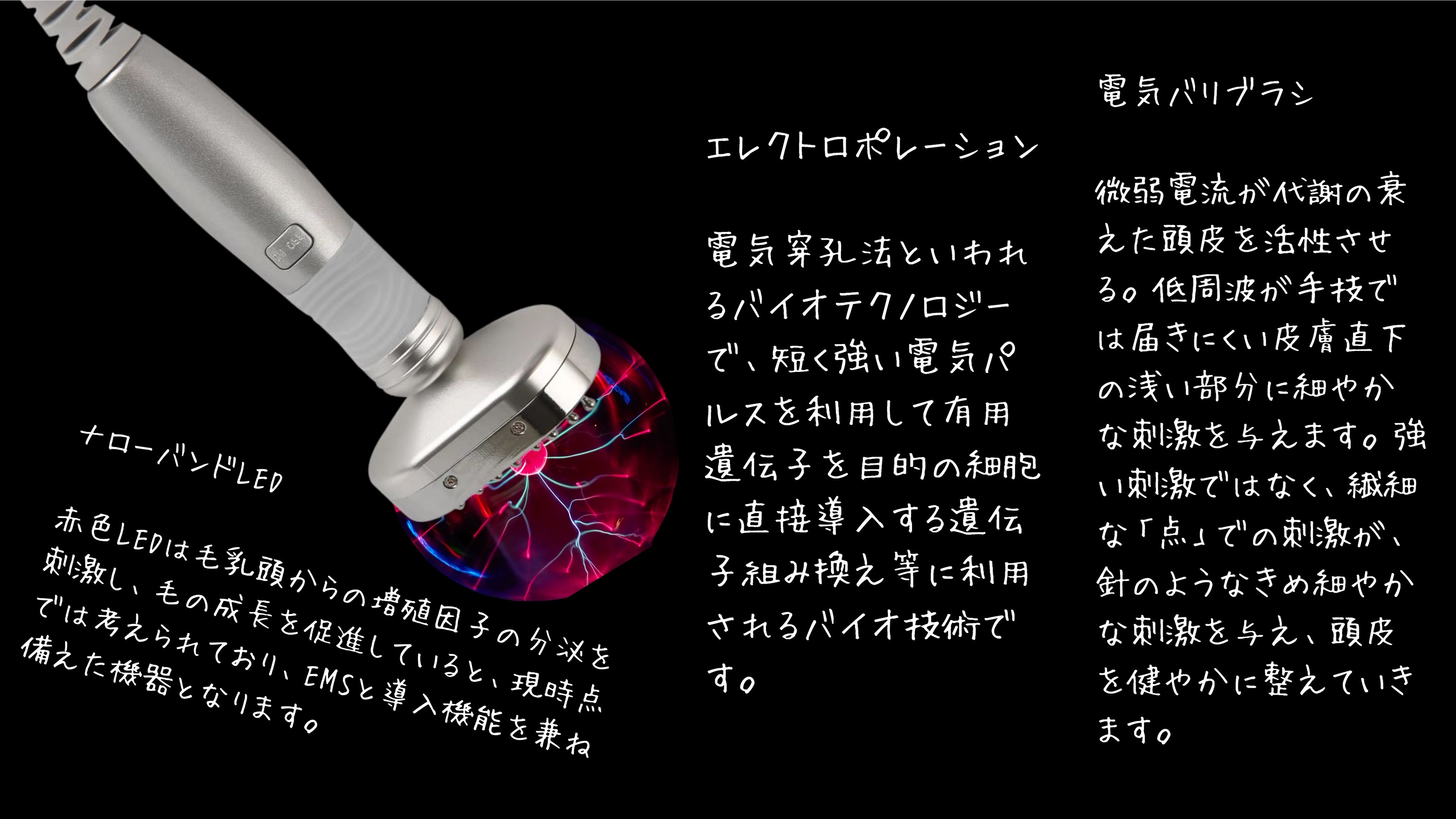 ◆電気針ブラシにメソポレーション機能を搭載し育毛促進剤を導入