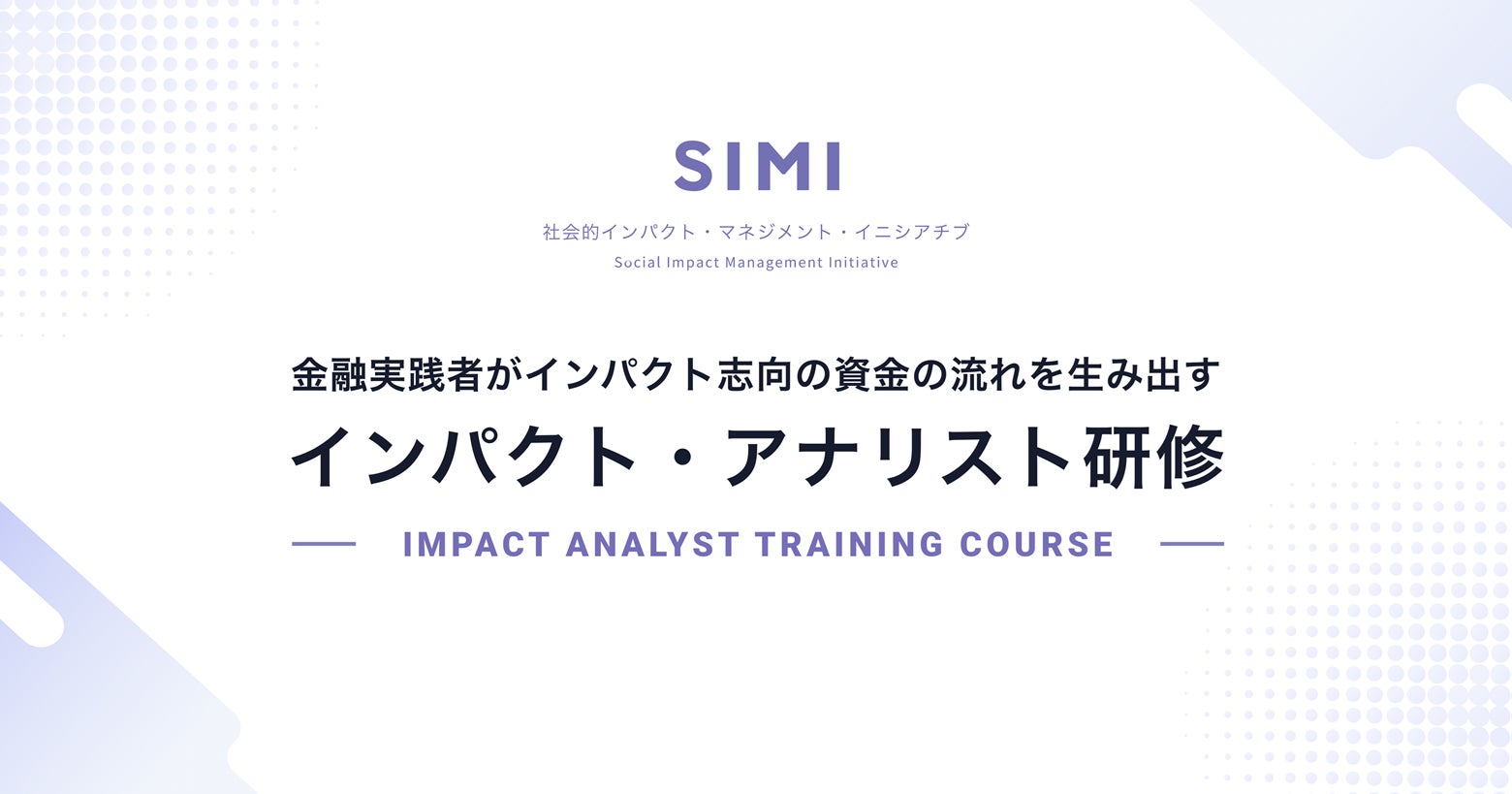 一般財団法人社会的インパクト・マネジメント・イニシアチブ(本社:東京都渋谷区、代表理事:今田克司。通称:SIMI)は、2022年より社会課題解決や価値創造に向けた意思がある資金提供者を対象に、「インパクト・アナリスト研修」を実施しており、2024年はインパクト測定・マネジメント(Impact Measurement & Management:IMM)を含むインパクト・ファイナンス(※1)の総合的な基礎知識を学ぶ「基礎編」を8月より開講いたします。