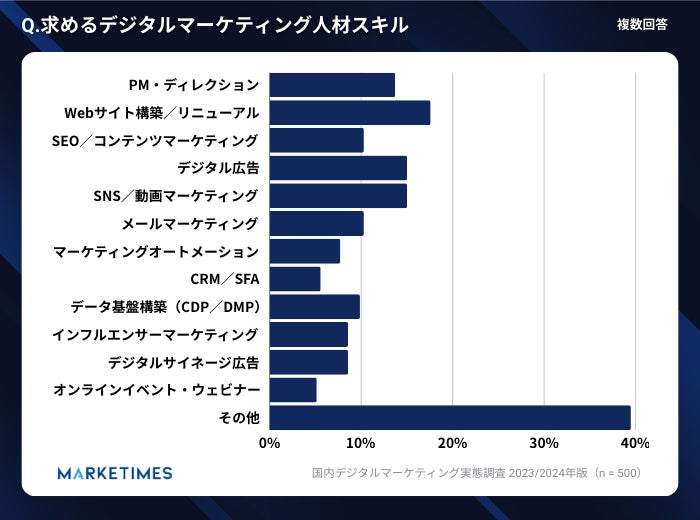 求めるデジタルマーケティング人材スキル:「Webサイト構築/リニューアル」が最も多い(17.6%)