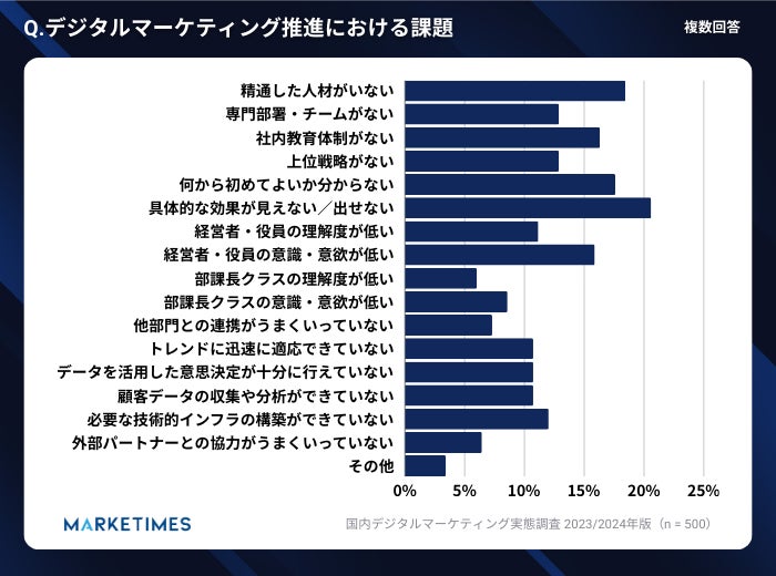 デジタルマーケティングの課題は「効果が出ない/精通した人材がいない」が多数【国内企業のデジタルマーケティング実態調査2023年/2024年】