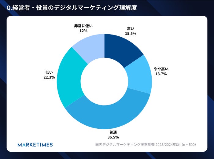 経営者のデジタルマーケティング理解度:15.5%が「高い」と評価し、多くは「普通」