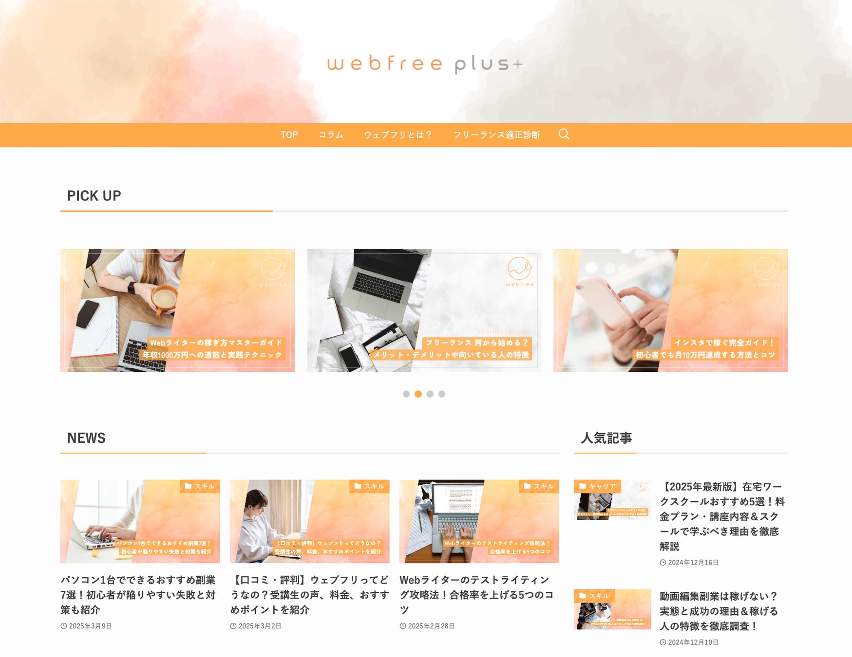 フリーランスへの転身や副業を始めたい人のためのオウンドメディア『webfree plus+(ウェブフリ プラス)』も公開中