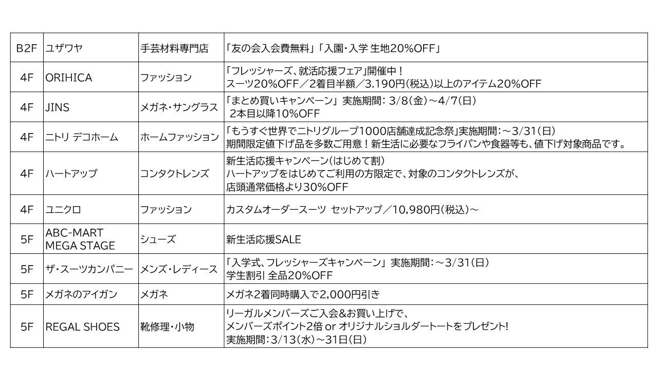 新生活におススメの商品やお得なサービス・特典など、お得にお楽しみいただるフェアを開催します。