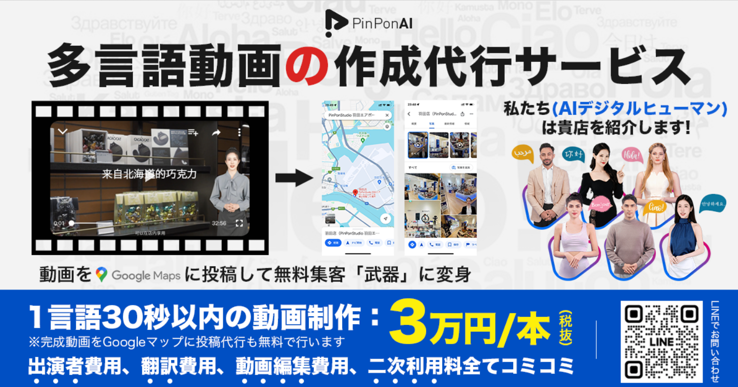 AIヒューマンが多言語動画でリアル店舗の魅力を発信!PinPonAIがGoogleマップ集客サービスを提供開始