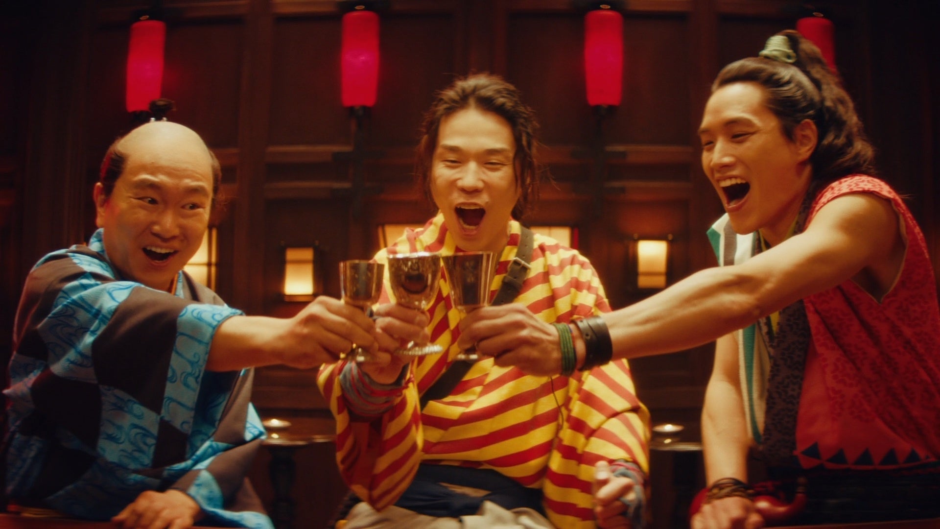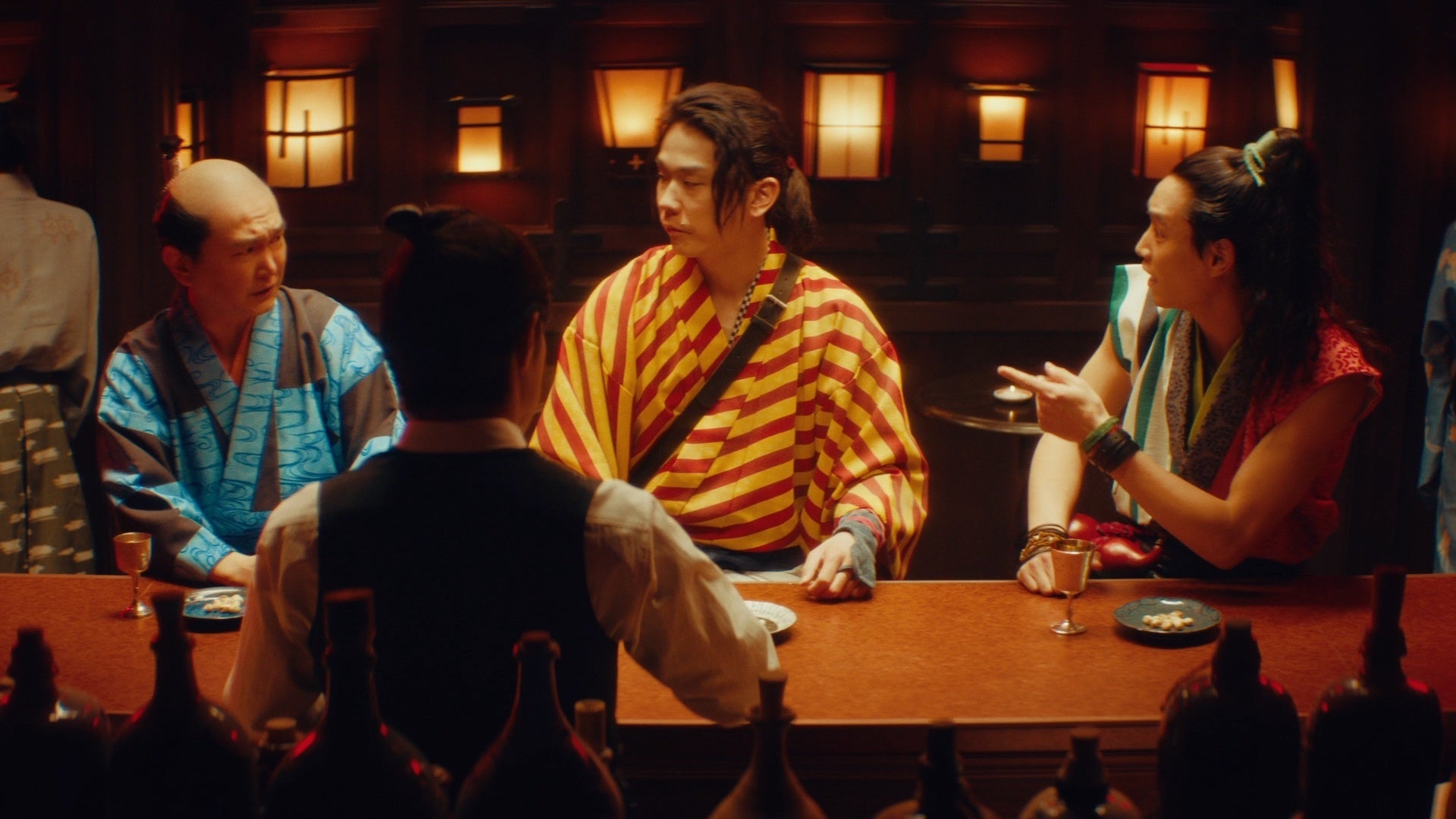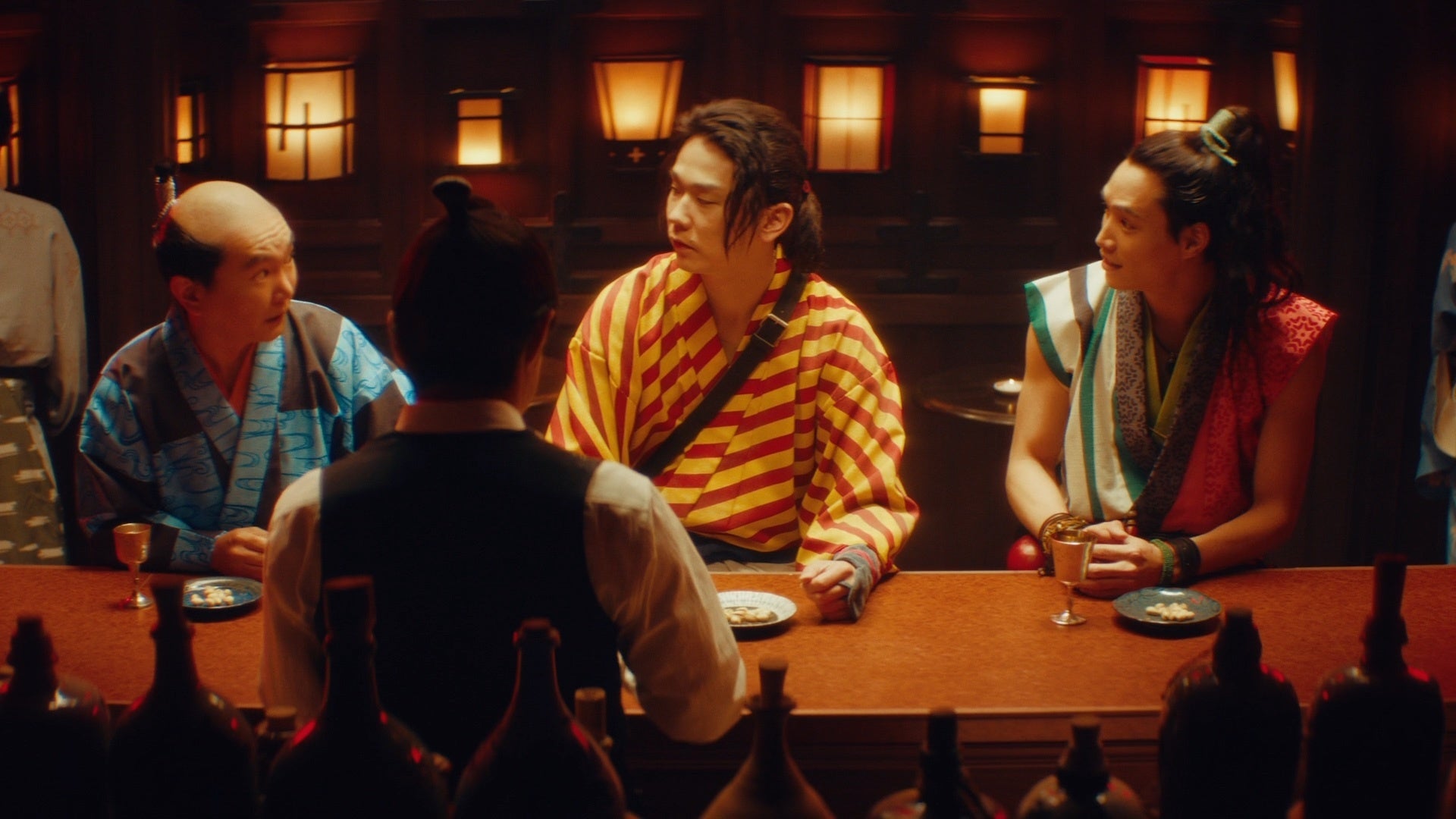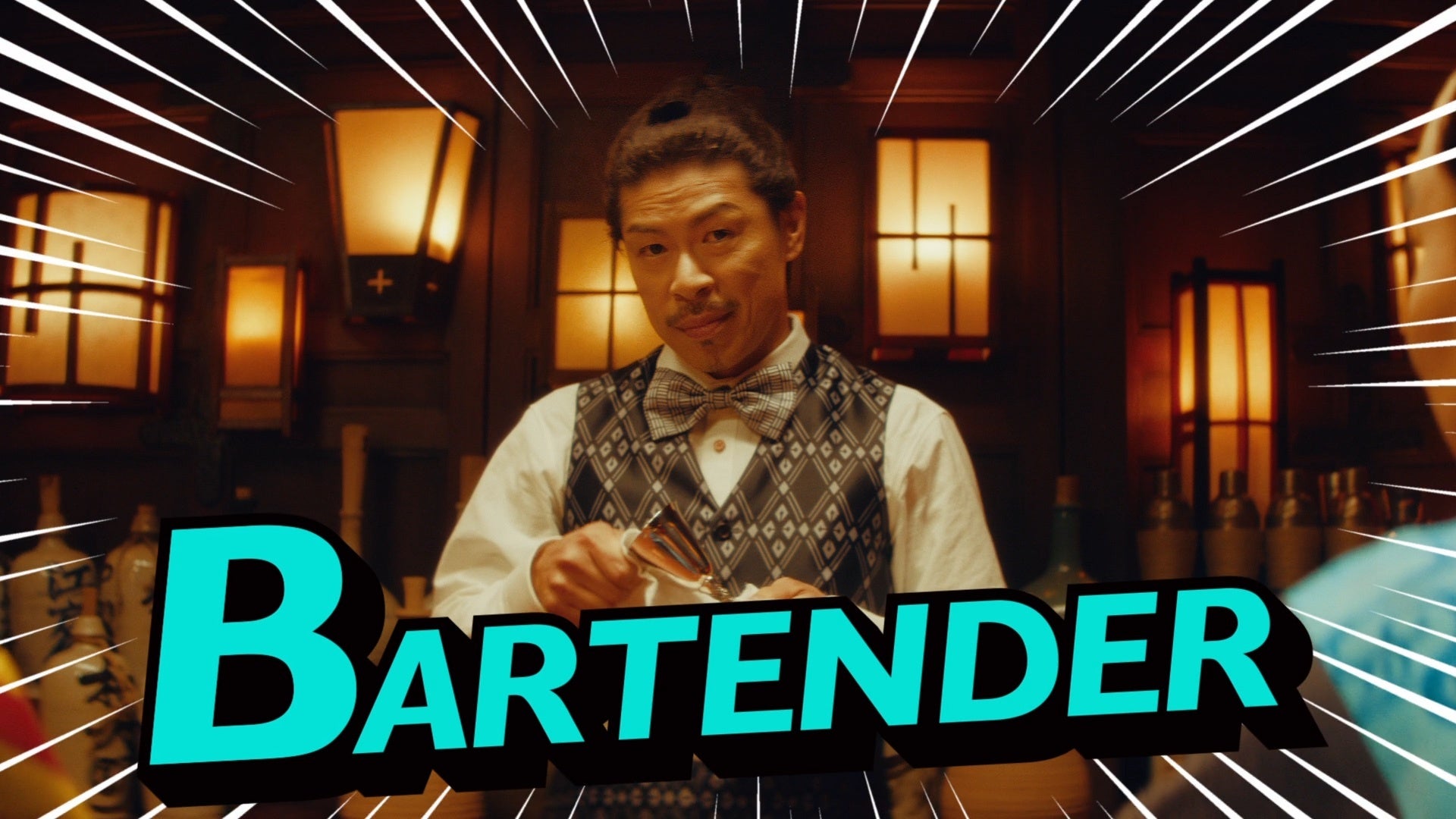 今回のCMは、モテる「3B職業」をテーマに、新キャラクターのバーテンダーに扮する松本利夫さんと侍ビッグ3の掛け合いが見どころとなっ ています。いわゆる現代の”3B”というと「バーテンダー」「美容師」「バンドマン」ですが、安土桃山時代のモテる3Bとして「琵琶法師」「弁 慶」など、クセのある職業も登場します。