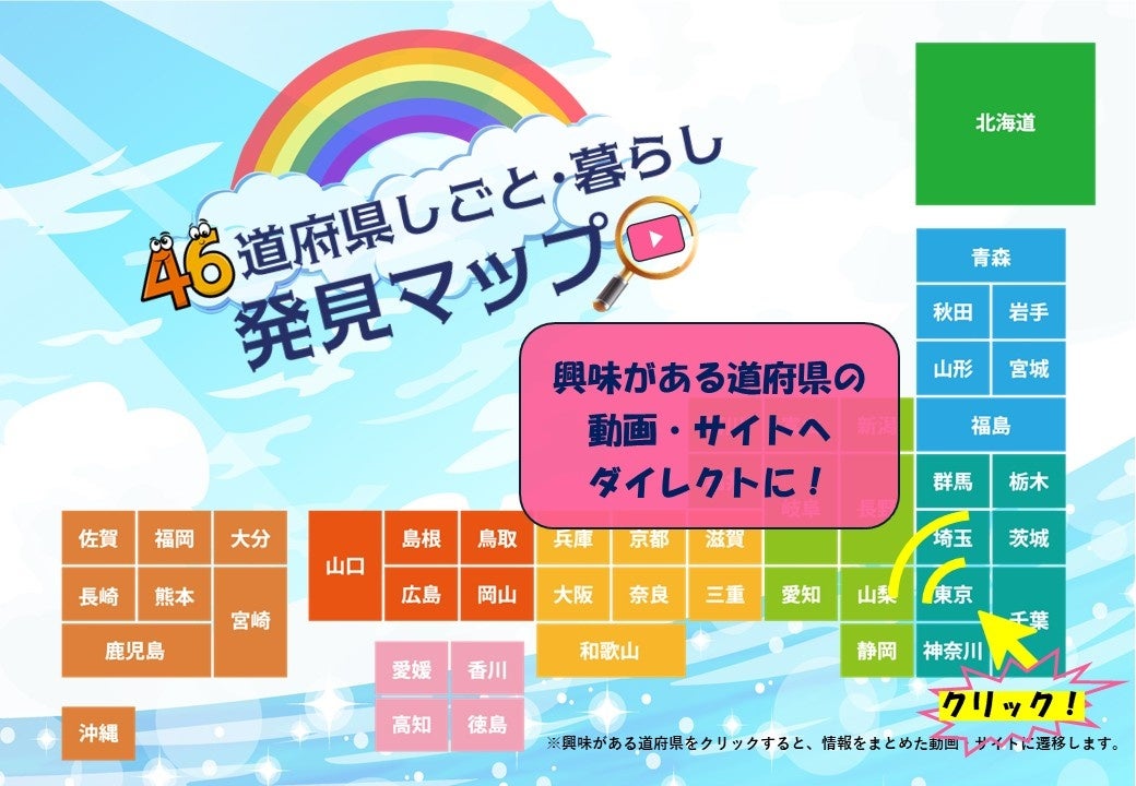 46道府県それぞれの魅力や支援制度が簡単に調べられる。自身の出身や居住している自治体のみならず。「観光で訪問した」「ニュースで見た」など気軽な好奇心から情報収集ができる、そんなマップをご案内します。