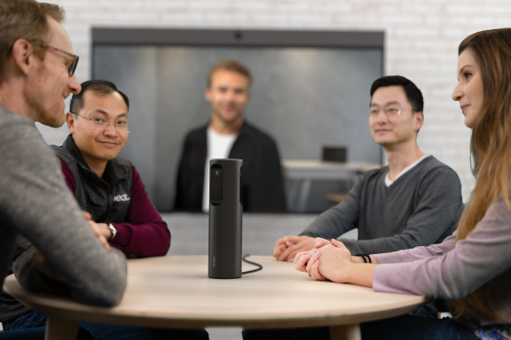 360度をカバーする3つのカメラを搭載し、会議室前方のNeat デバイス(*注1)と連動し、参加者を認識して両方の映像・音声を自動的に切替えることで、会議室にいる会議参加者が会議室前方を向いても反対側を向いても、参加者の表情を終始正面から捉えます。これによりリモート参加者が疎外感を感じない一体感のある会議体験を提供します。