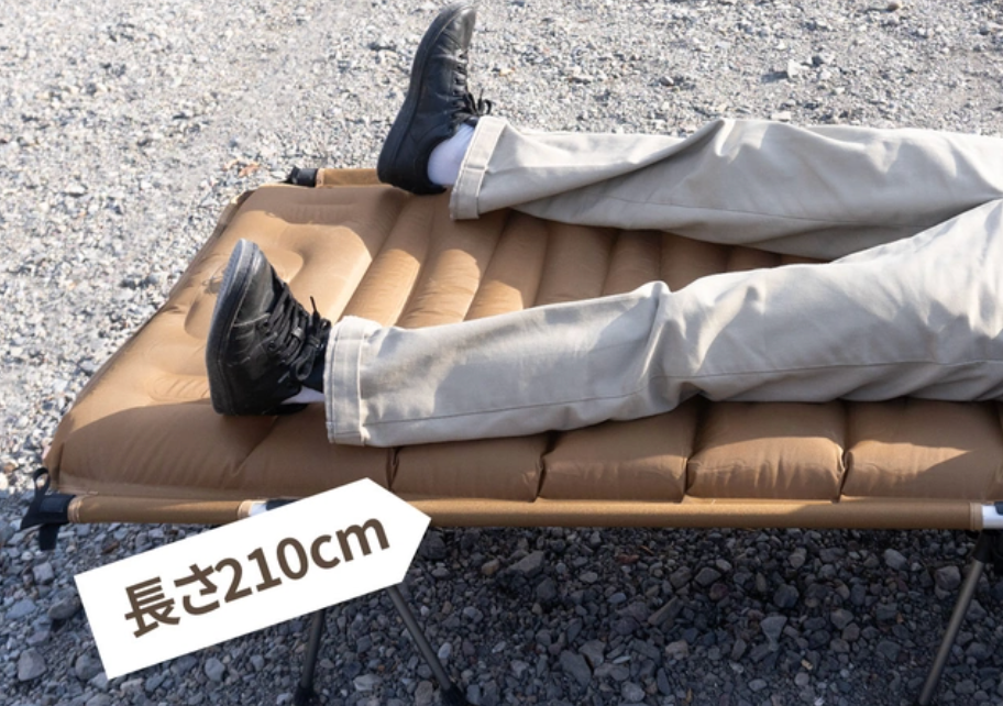 【コットの進化系!極厚10cmのマットが一体に!キャンプ泊に沼るエアーマットコット】