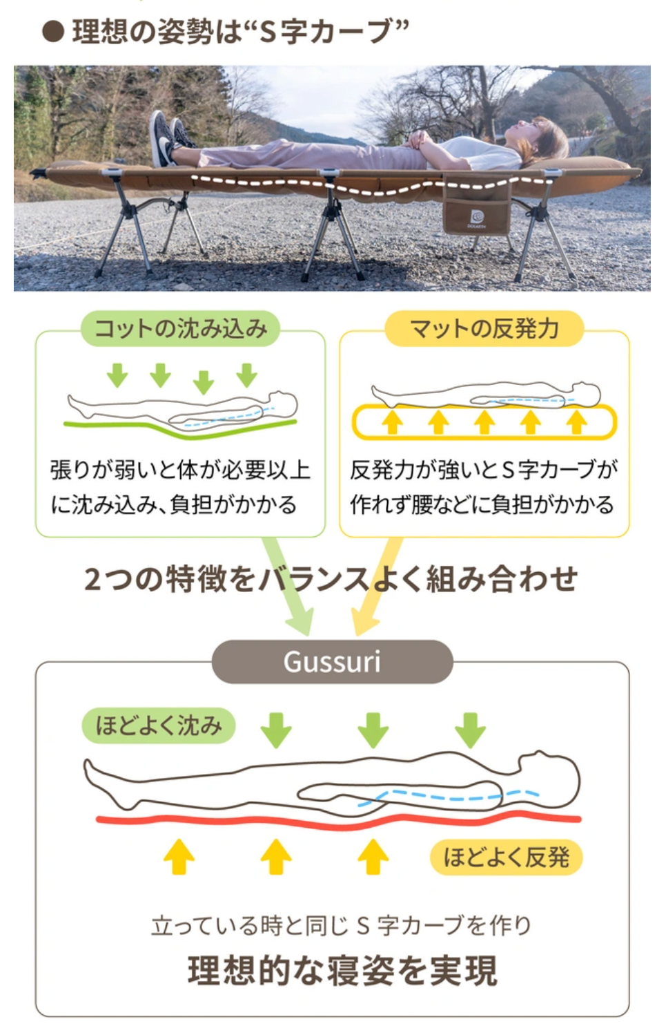 「もっとキャンプでも快適に寝たい!」という想いから生まれたのが「Gussuri」です。
