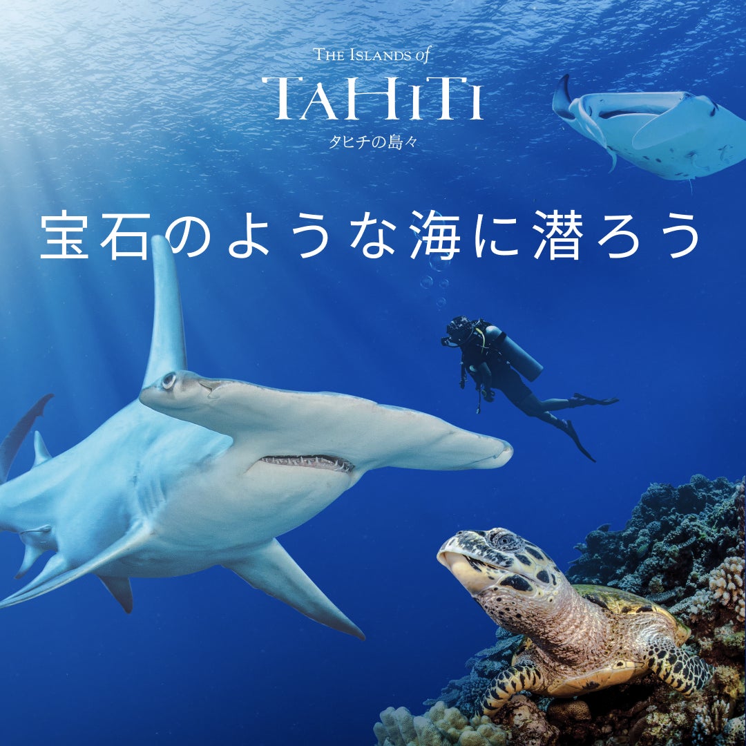 300万平方マイルに及ぶ世界最大の海洋保護区を有する、タヒチの島々の観光プロモーションを担うタヒチ観光局では、ダイビングの魅力の認知拡大を目指し、現在、日本語のマイクロサイトやソーシャルメディアにて、ダイビングに特化した情報発信を行っています。