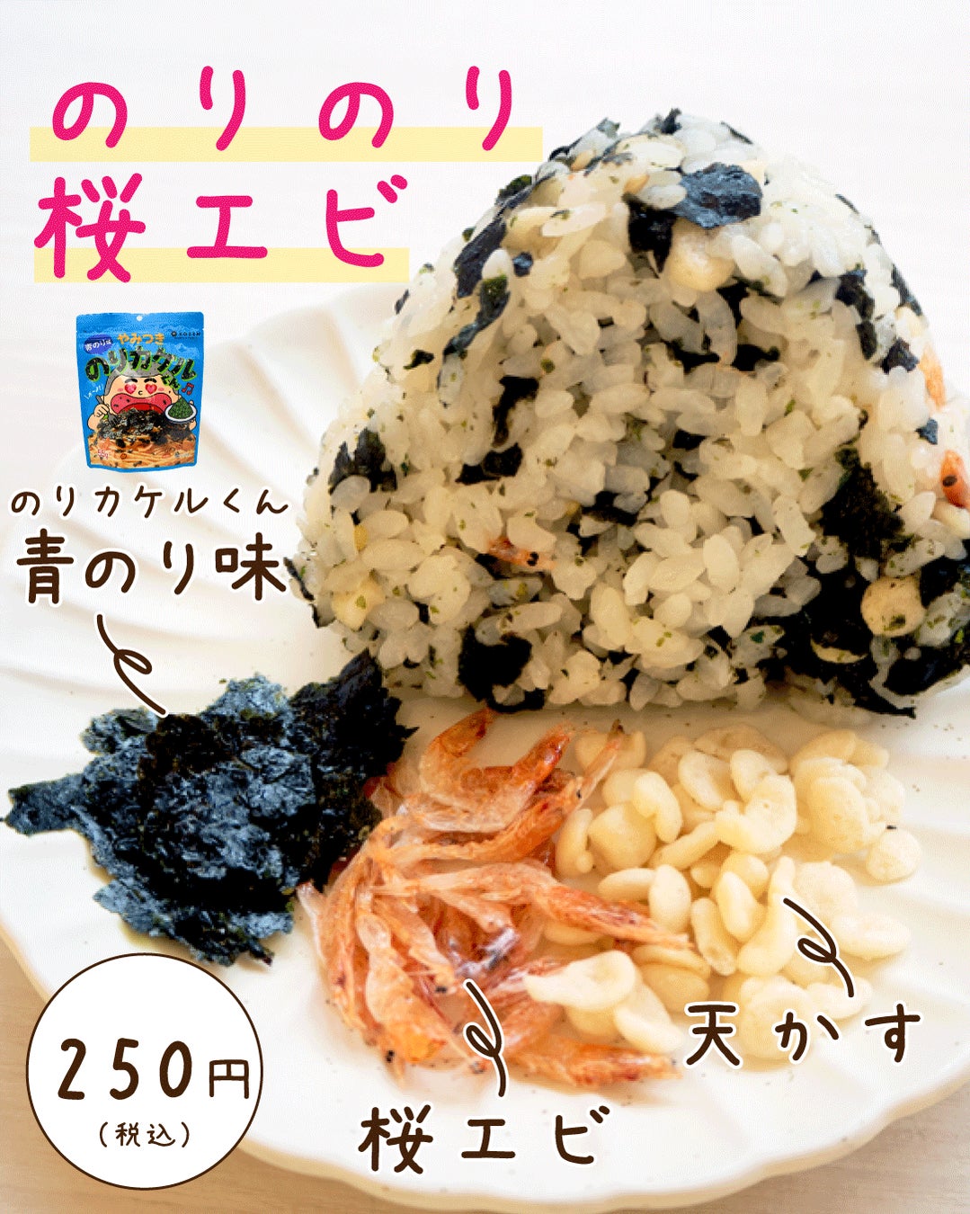 弊社のNB商品「のりカケルくん青のり味」を使用することで、海苔の香りと青のり風味を一緒に楽しむことができます。