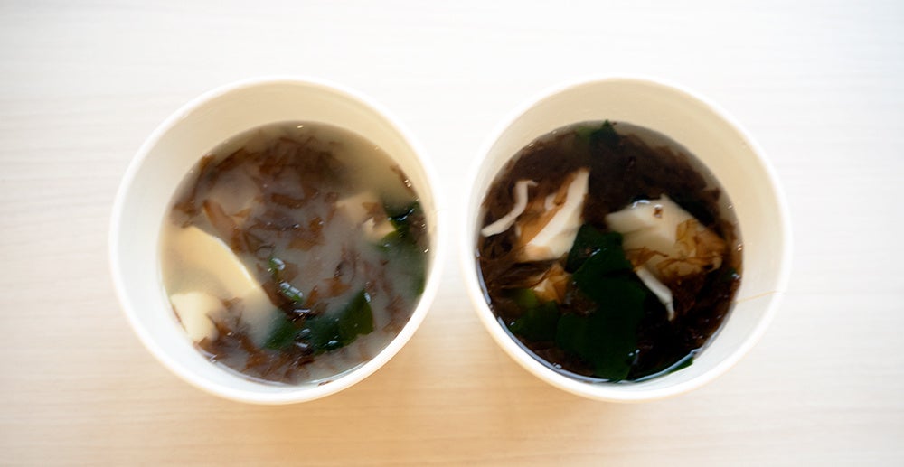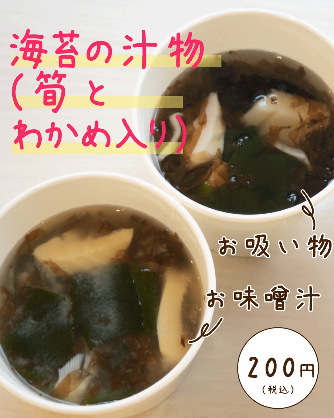 味噌汁とお吸い物の2種類からお選びいただけます。
