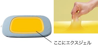 ・体圧“流動”分散という特長を持つ独自開発素材「エクスジェル」を使用。薄型でも底付き感がなく快適に座ることができます。