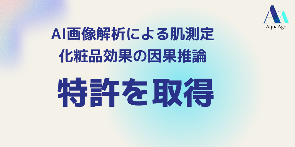 当社は「AI画像解析による肌測定化粧品効果の因果推論プログラム、及び因果推論装置に関する」特許を取得しました。本特許は、カメラで取得した顔の画像から肌の状態を自動で診断する装置に関するものです。従来の肌測定装置はユーザに客観的な肌の評価を提供しますが、どの化粧品が肌の状態を改善するかについてはユーザが判断する必要がありました。AquaAgeの新特許は、ユーザの肌の状態に適した化粧品を推定できる因果推論プログラムを提供します。化粧品の撮影解析によって商品名及び成分を含む商品情報を取得し、登録日からユーザの肌の特徴量の変化量を算出し、因果関係を推論します。これにより、化粧品の登録日と特徴量との因果関係を判断し、ユーザの肌の状態に適した化粧品を推定することが可能となります。