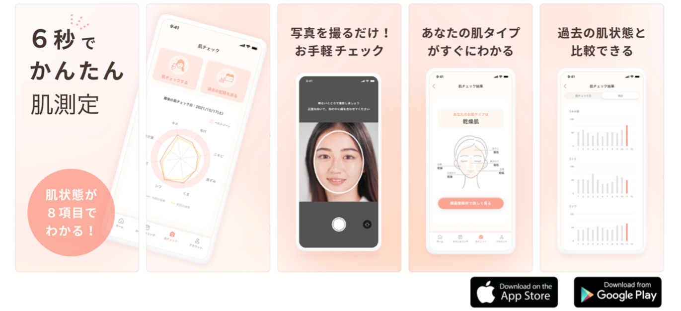 一般消費者向けの肌画像解析アプリ「HADABON」を去年6月にリリースしました。アプリは、利用者にとって使いやすく、迅速な肌測定を提供し、肌状態の把握とスキンケアの効果確認をサポートします。これにより、個々の肌の健康をより良い状態に保つ手助けとなるアプリです。