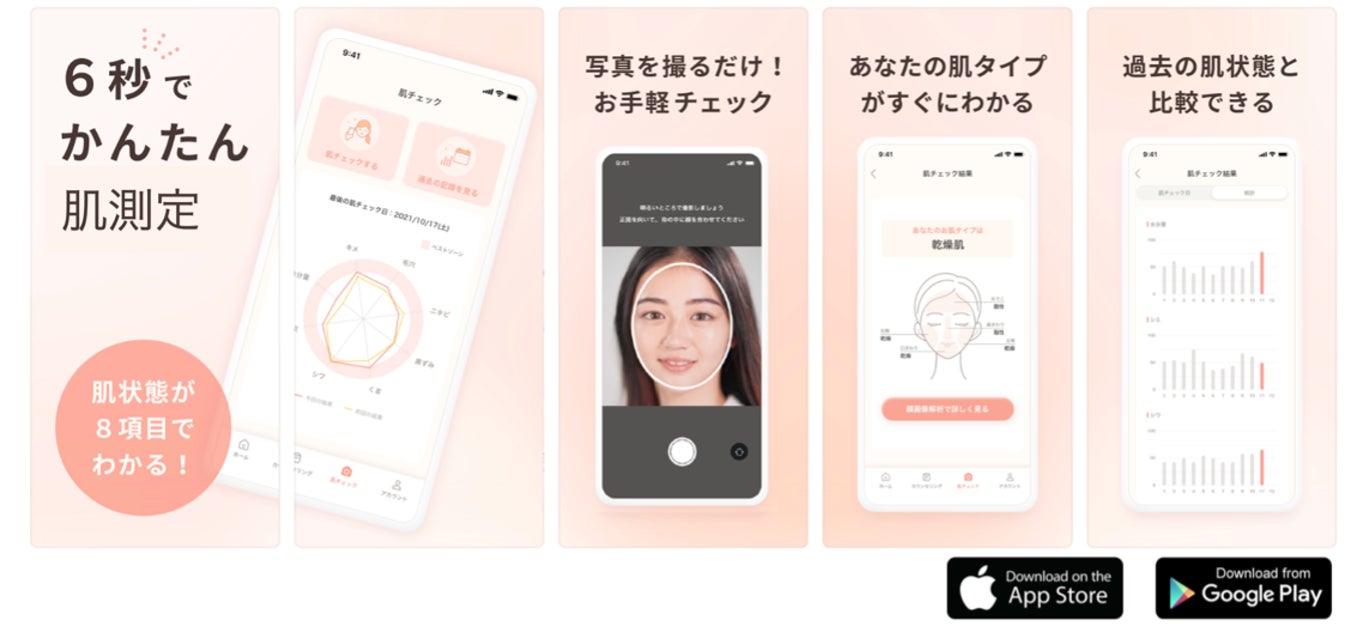 手軽に肌測定が可能:スマホで顔写真を撮るだけで、自宅にいながら手軽に肌測定が行えます。