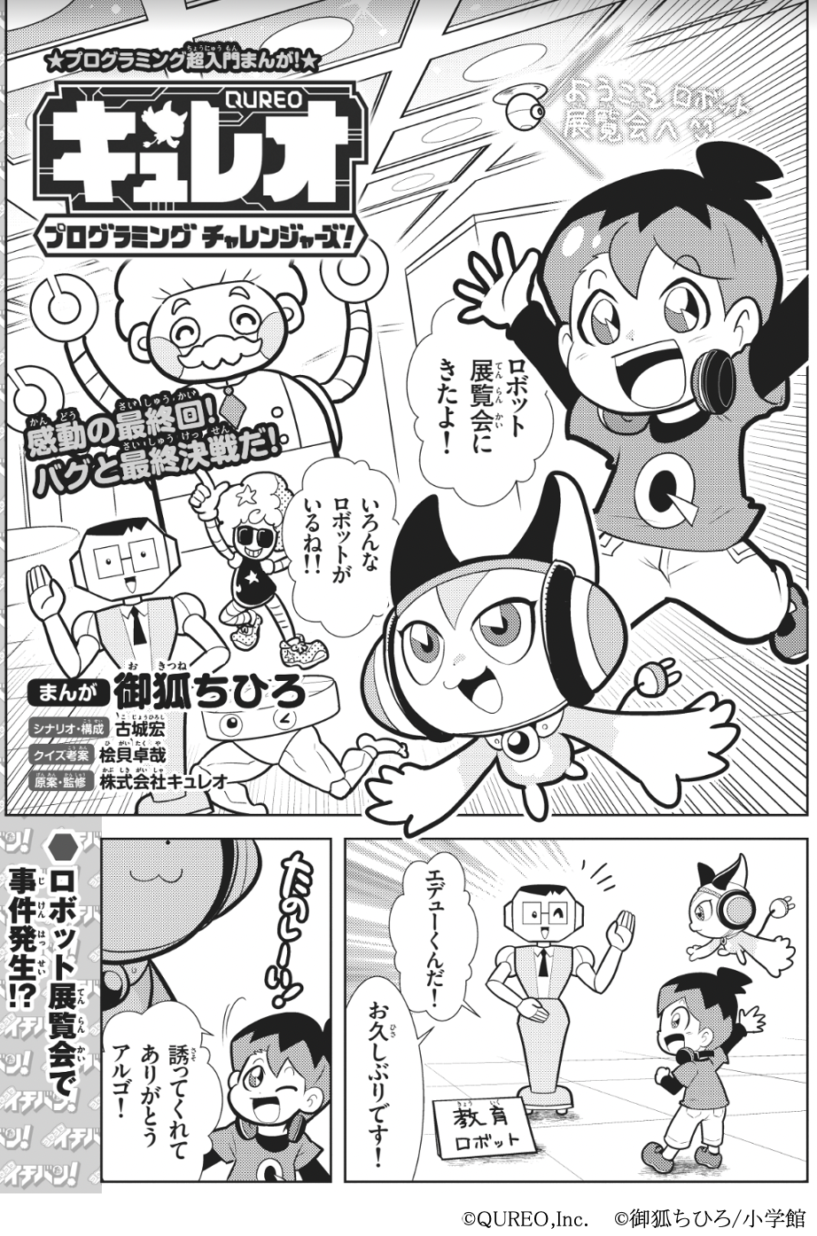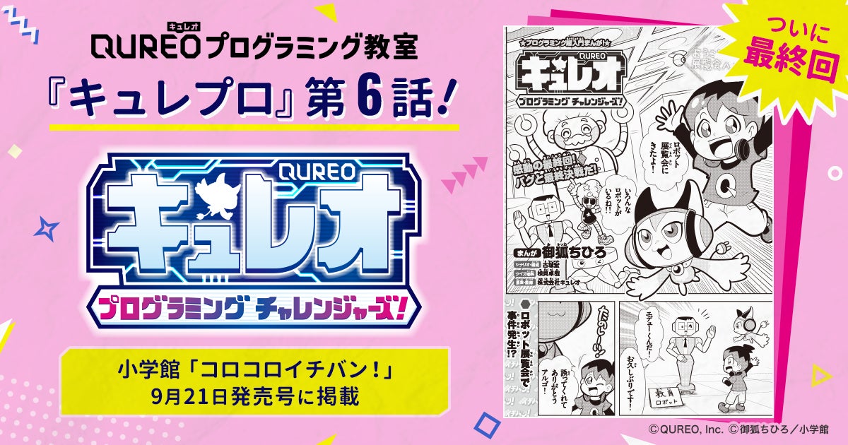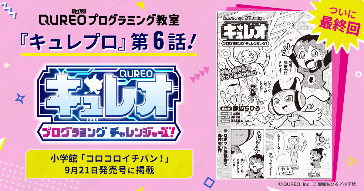 株式会社CA Tech Kidsと株式会社スプリックスとの合弁会社で、プログラミング教材の開発・運営・販売事業を行う株式会社キュレオ(本社:東京都渋谷区、代表取締役社長:上野朝大)は、運営する子ども向けプログラミング教室「QUREO(キュレオ)プログラミング教室」https://qureo.jp/ が全面監修するプログラミング学習マンガ『キュレオ プログラミングチャレンジャーズ!(通称:キュレプロ)』の最終回となる第6話の内容をお知らせいたします。第6話が掲載される、小学館「コロコロイチバン!」9月21日発売号の本誌ページの一部も公開いたします。