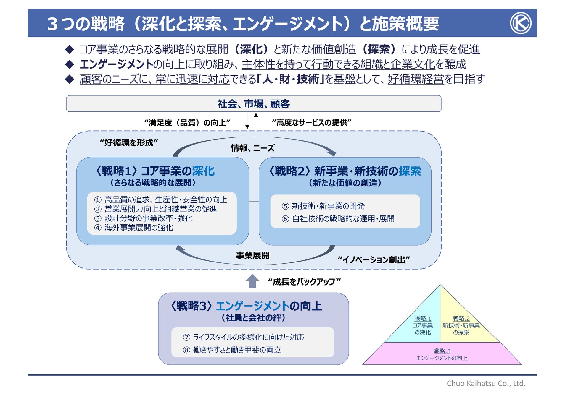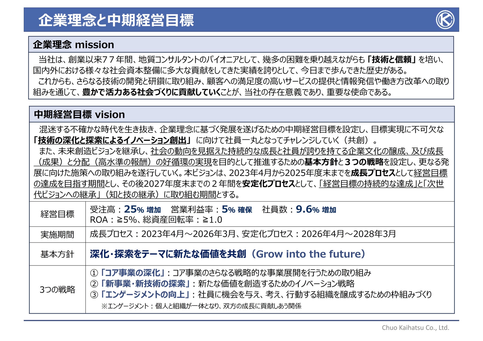 中央開発株式会社は、前中期経営ビジョン「~高品質を追求し、社会へ貢献する未来創造ビジョン~
