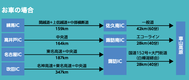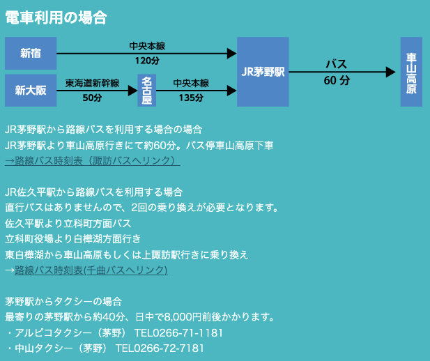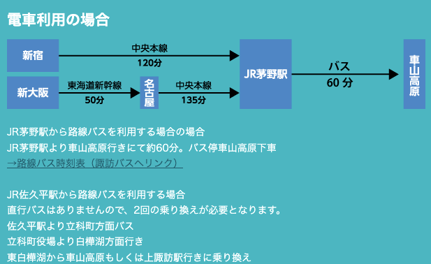 〈車山高原スカイパークスキー場までのアクセス方法〉