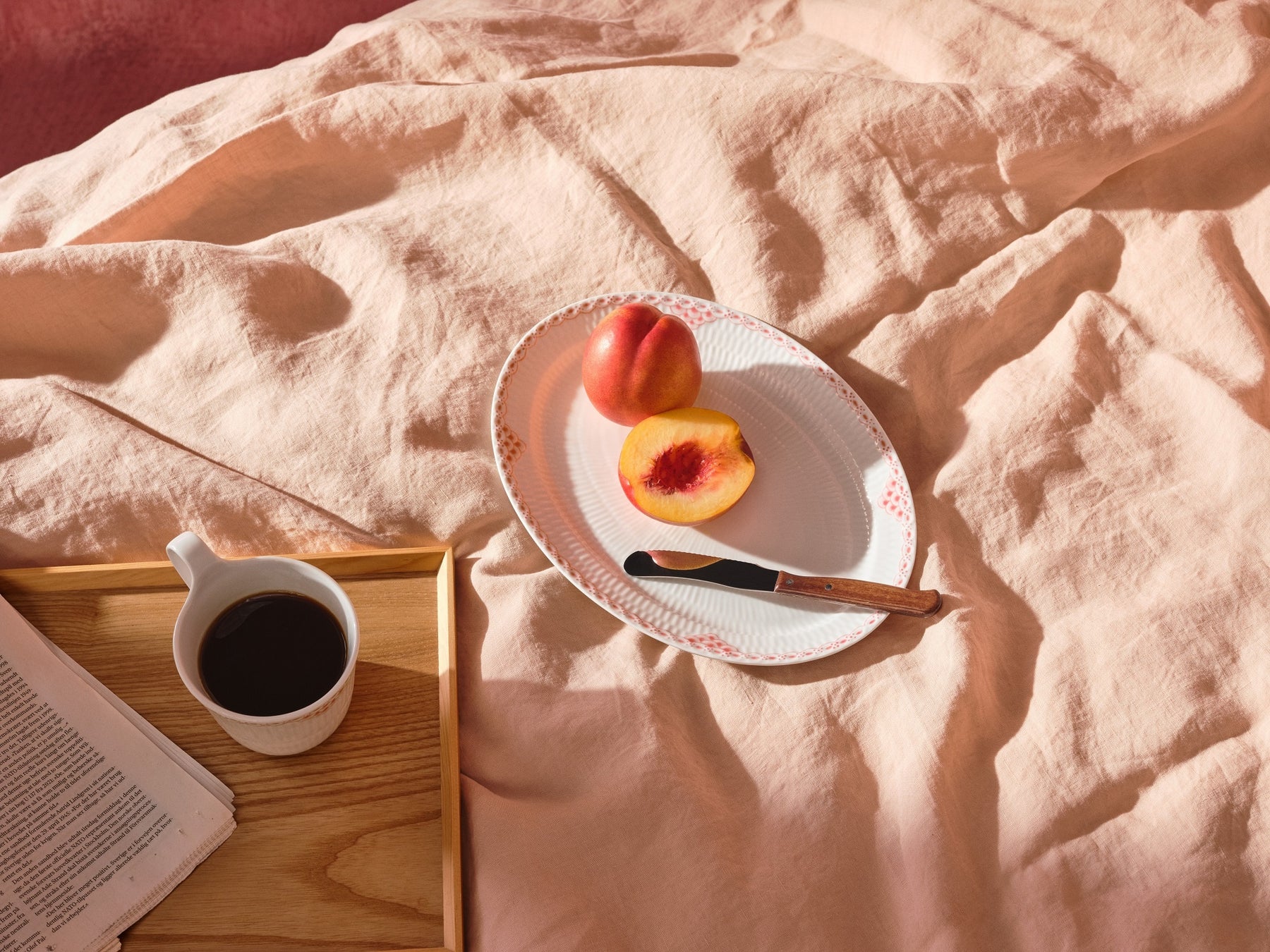 新コレクションは、ロイヤル コペンハーゲンのすべてのポーセリンと同様に用途が広く、特に朝食やブランチ、またはスイーツで満たされた午後のひと時にぴったりです。白磁の上に輝く柔らかくも活気に満ちたコーラルの色合いは、焼きたてのパンやペストリー、色とりどりのフルーツ、おいしいケーキを美しく引き立てます。 既に発売済みのコーラル コレクションの様々なアイテムとも、またロイヤル コペンハーゲンのその他のコレクションとも、自分らしいミックス&マッチが楽しめる、軽やかなエレガンスを体現した新作のラインアップをご紹介します。