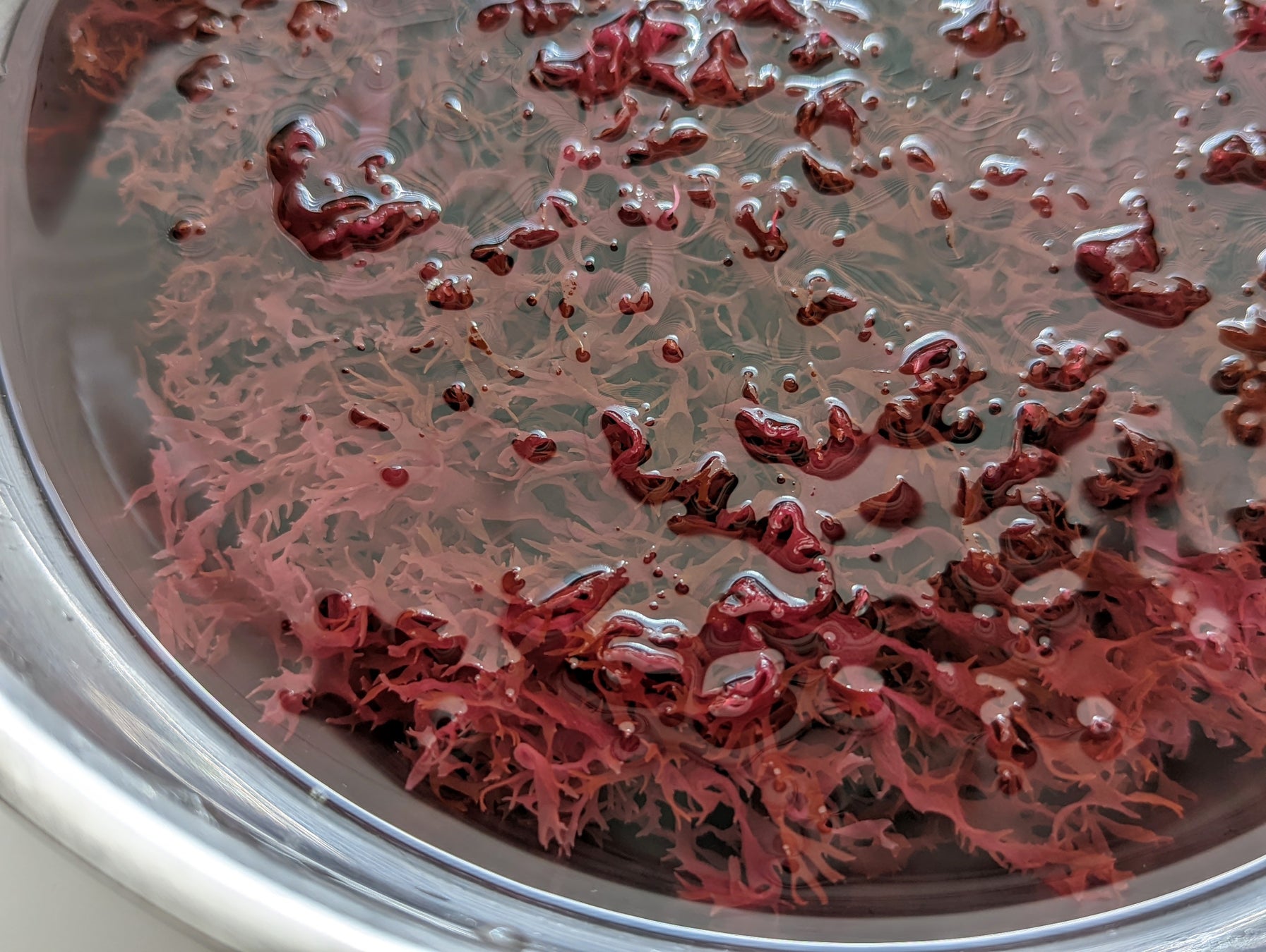 存在感のある紅色と歯応えのある食感が特徴的ですが、紅藻類の中でも一際個性的な香りを持ち合わせるトサカノリ。
