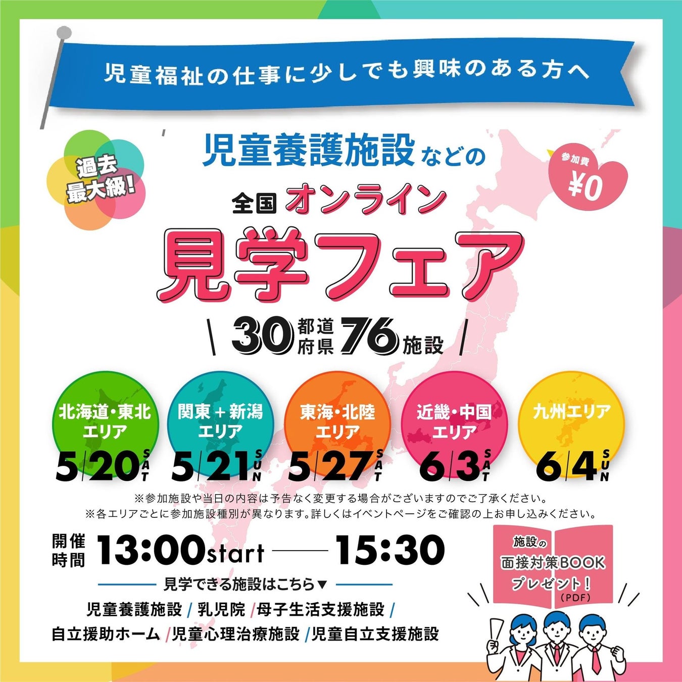 地域も施設種別も超えた全国の77施設を5つのブロックに分けて行ったオンライン見学会のほか、全国の施設を施設種別で分けたオンライン説明会など大規模なオンラインイベントを開催。