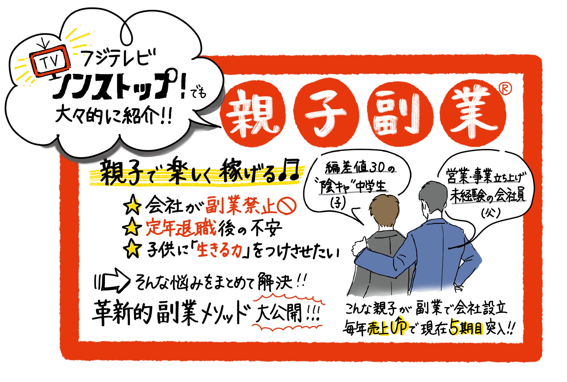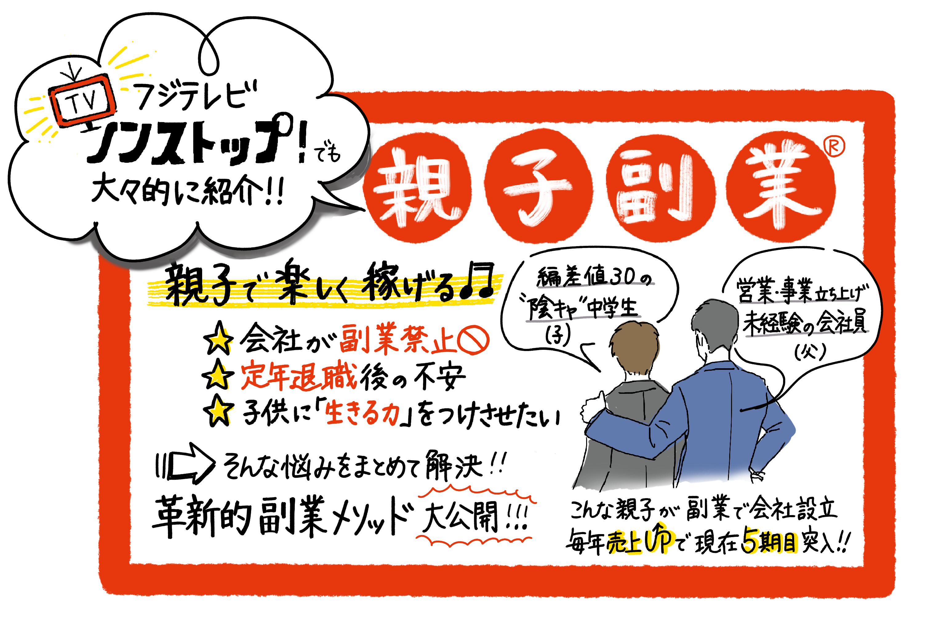 新規事業立上げ経験はもちろん、営業経験すらない会社員一筋25年の父が、偏差値30の落ちこぼれ中学生の息子と一緒に副業で株式会社設立。社長には中学生の息子が就任。そんな親子でも毎年売上UPで法人5期目。
